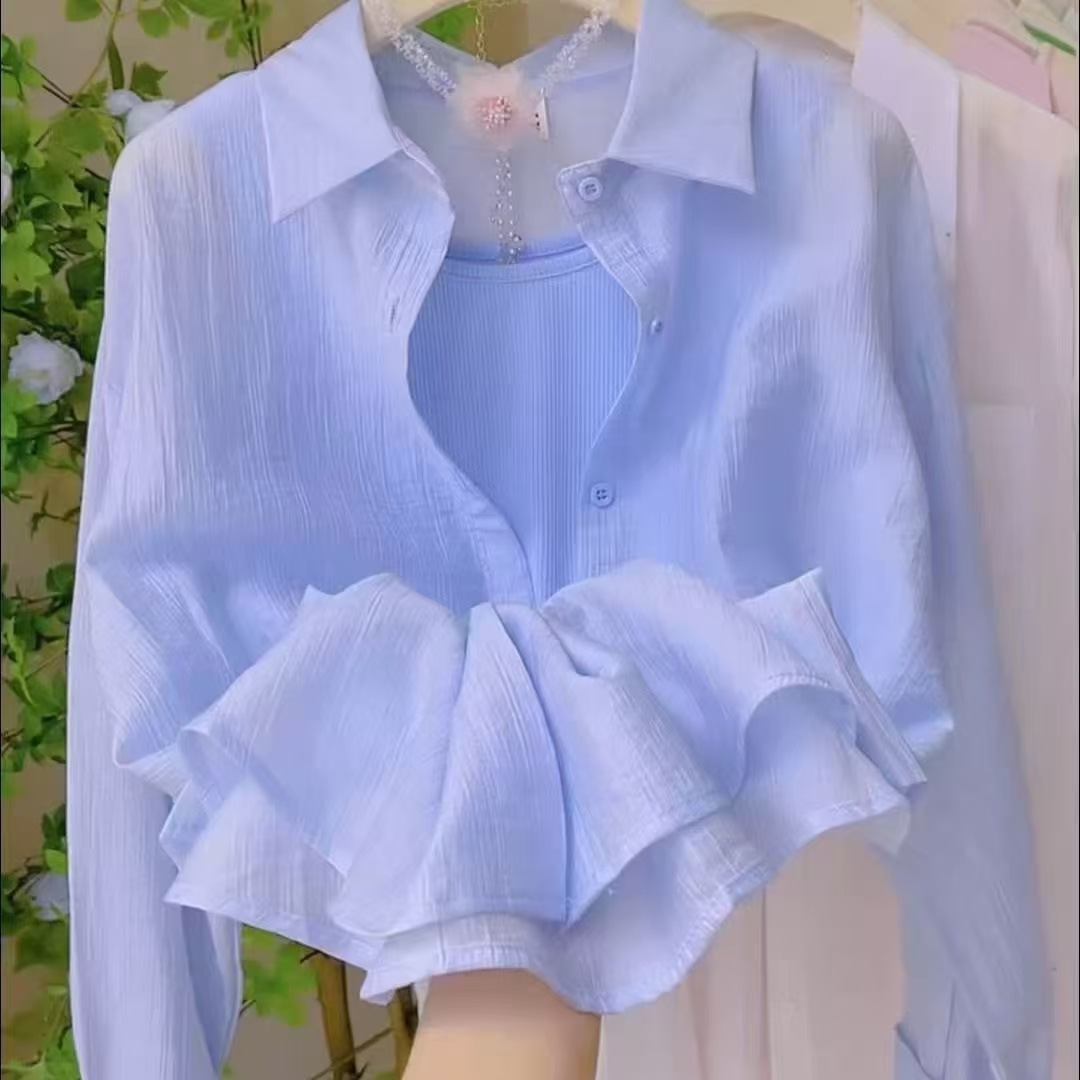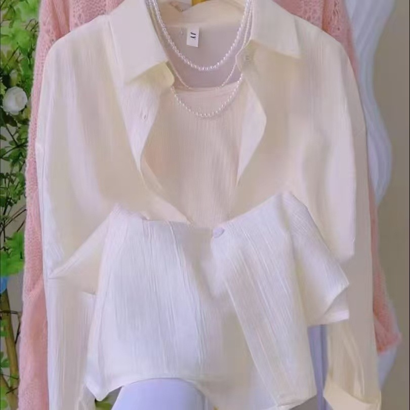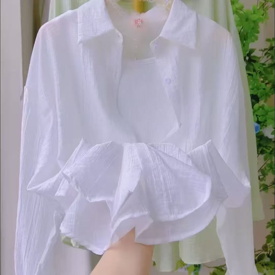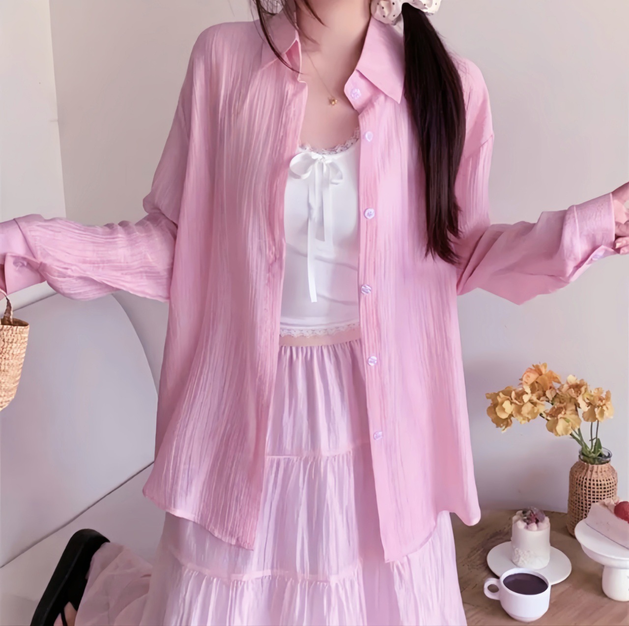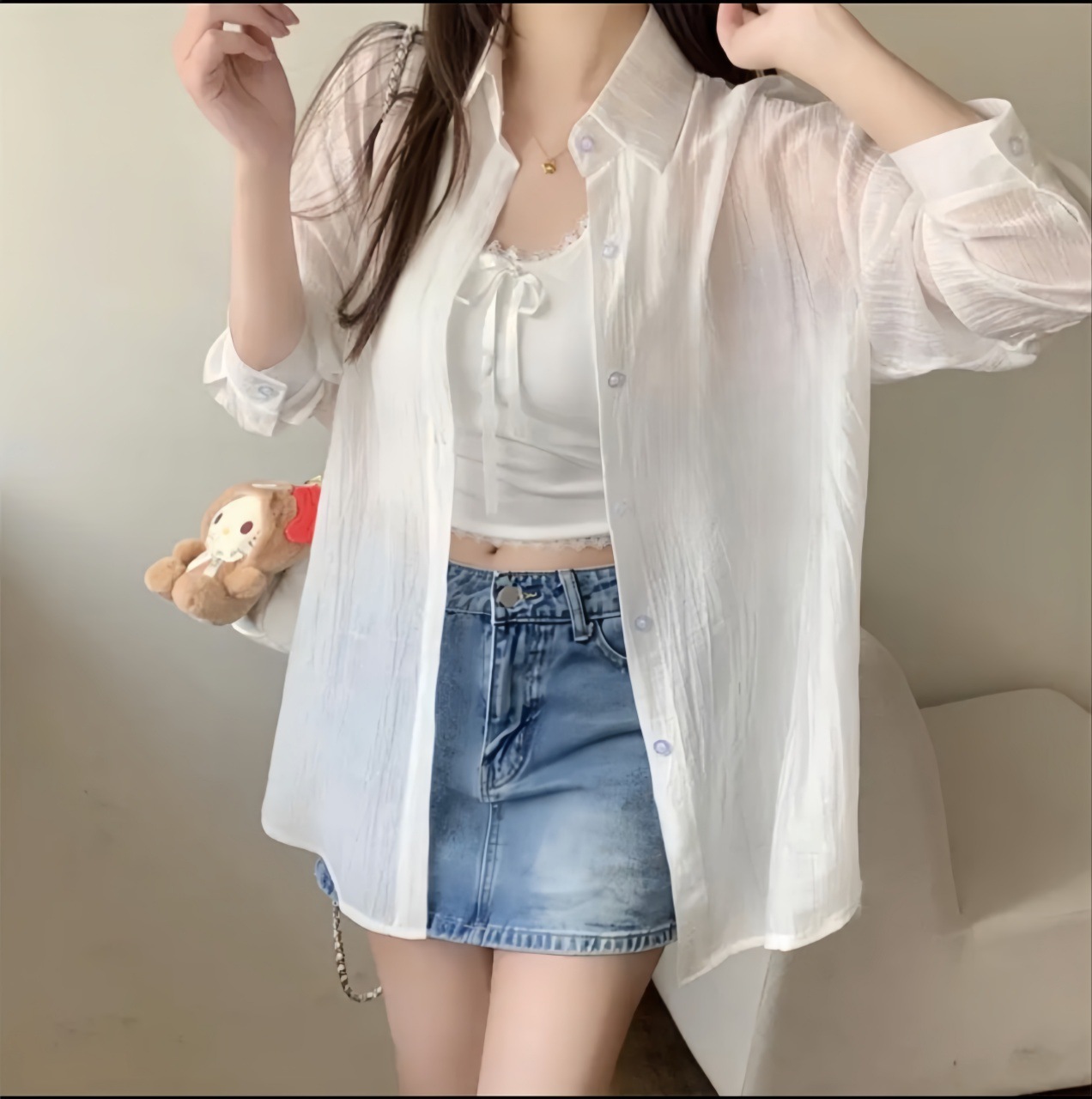 여성용 리오셀 텐셀 주름 자외선 차단 셔츠 여름 얇은 카디건 스몰 셔츠 레이지 스타일 다용도 탑