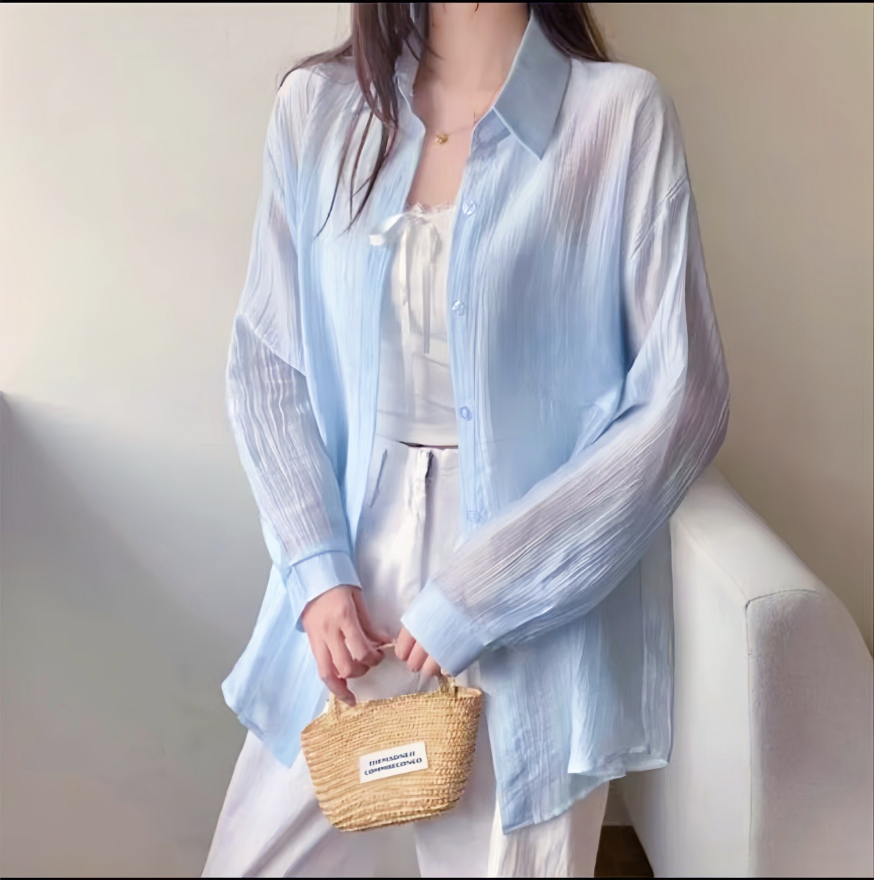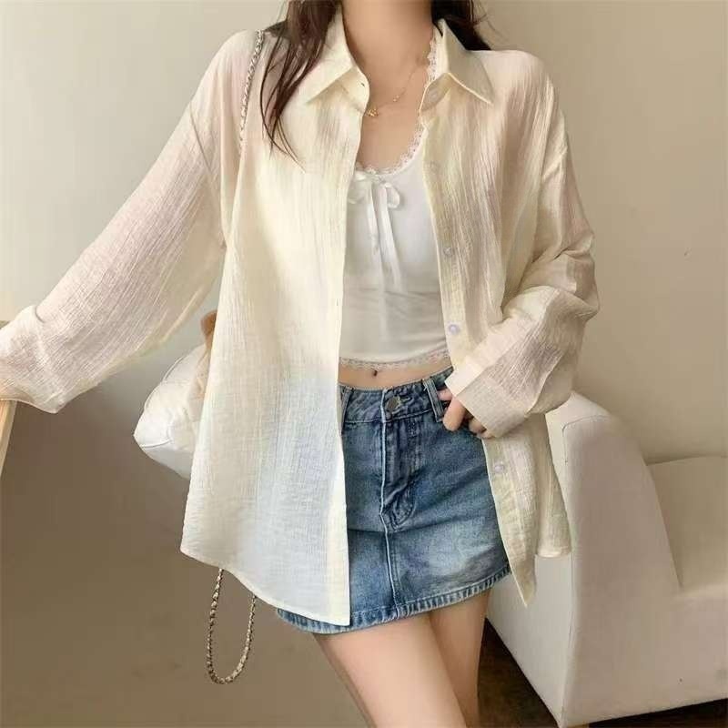 여성용 리오셀 텐셀 주름 자외선 차단 셔츠 여름 얇은 카디건 스몰 셔츠 레이지 스타일 다용도 탑스토어 가기