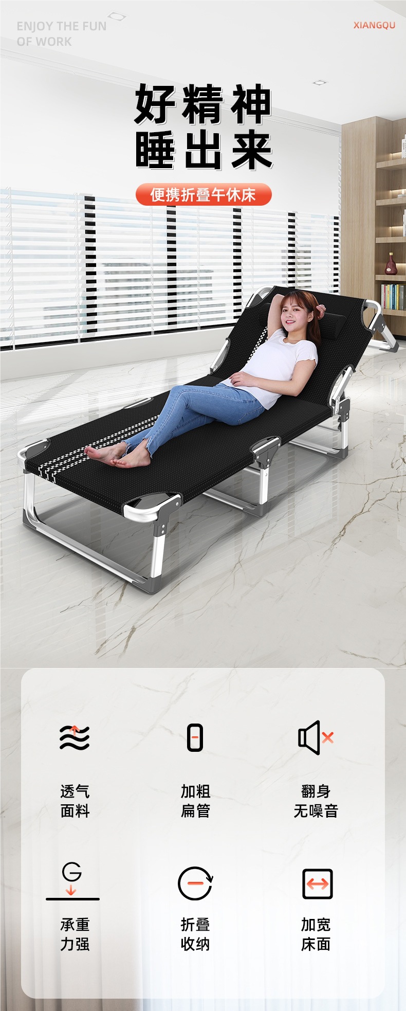 알루미늄 합금 접이식 침대 싱글 침대 가정용 간단한 낮잠 침대 사무실 성인 낮잠 안락 의자 캠프 침대