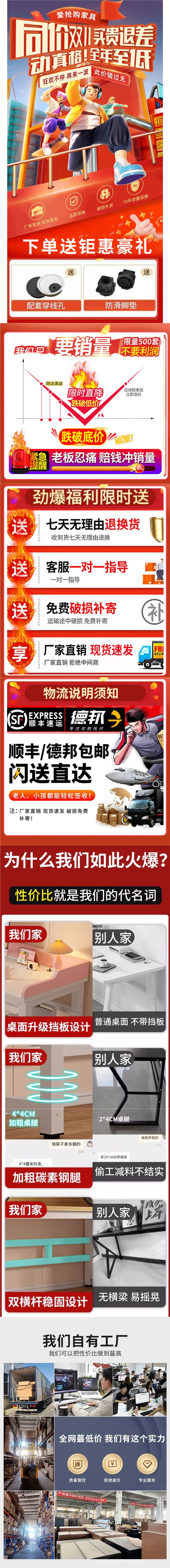컴퓨터 책상 데스크탑 더블 책상 학생 홈 침실 학습 테이블 베젤 간단한 사무실 책상 e-스포츠 테이블