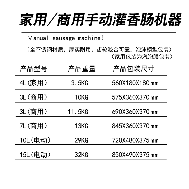 • 7L 수직 수동 스테인레스 스틸 소시지 충전 기계
