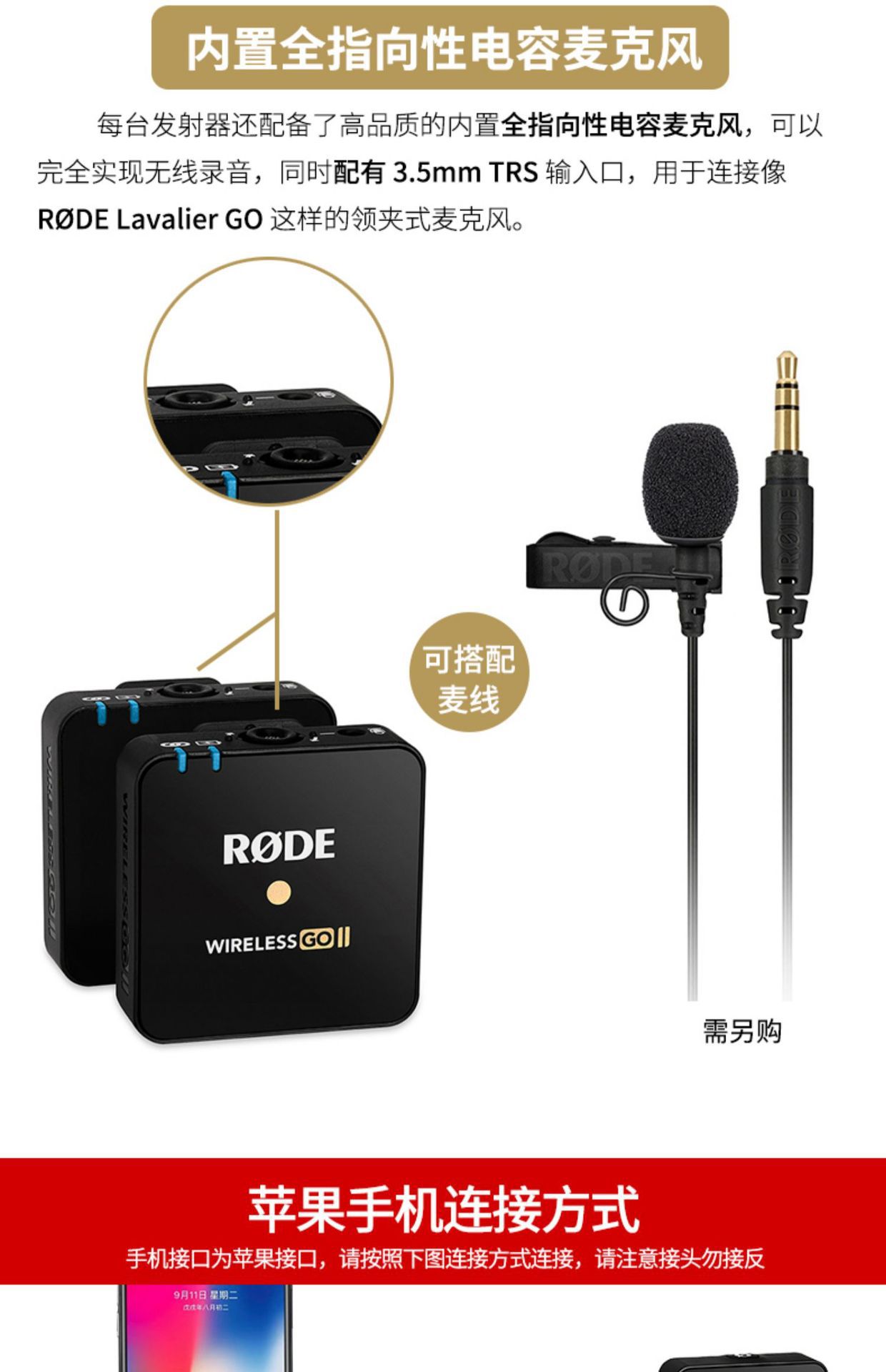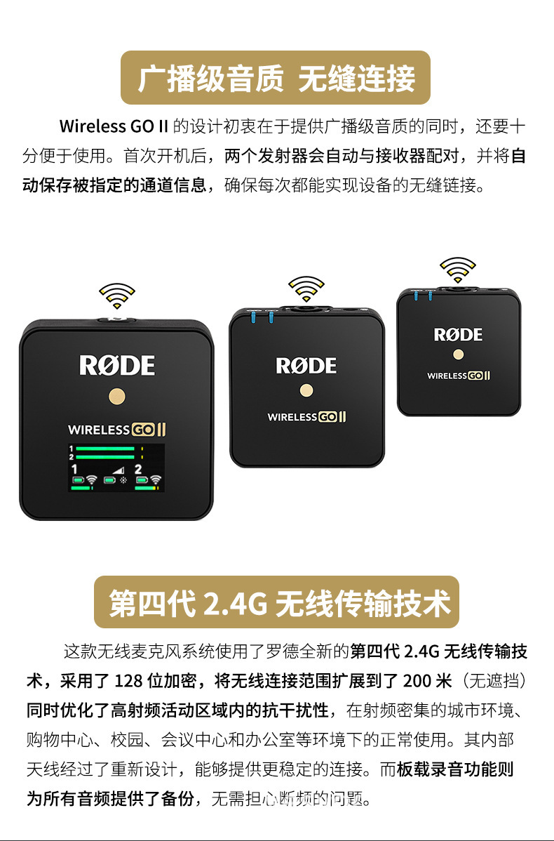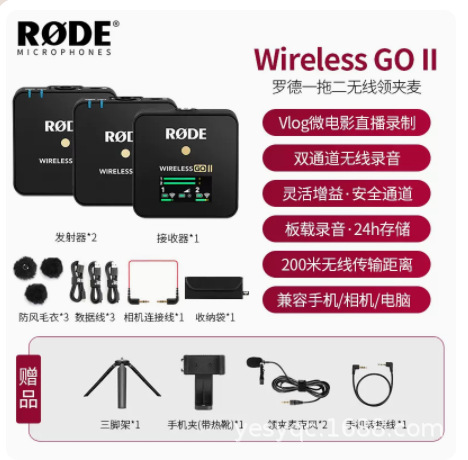 Rode Wireless Go II Pro 1-2 무선 마이크 카메라 휴대폰 라발리에 라이브 방송 라디오스토어 가기
