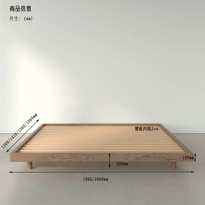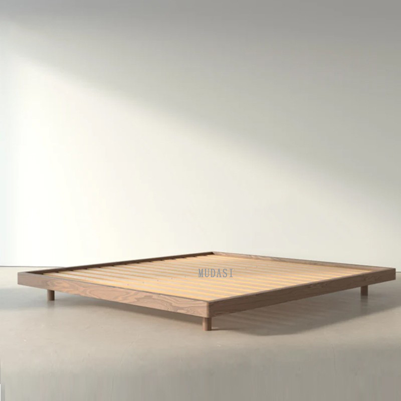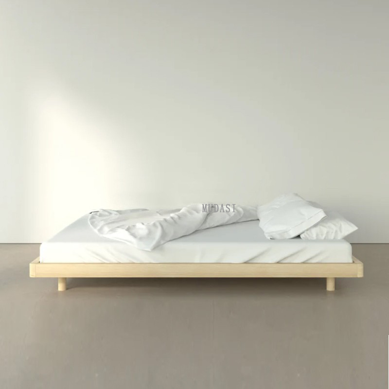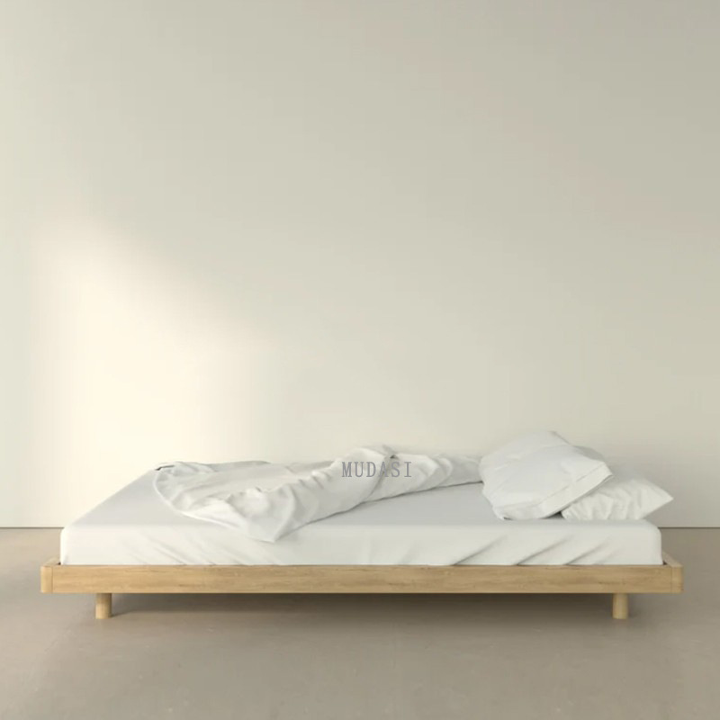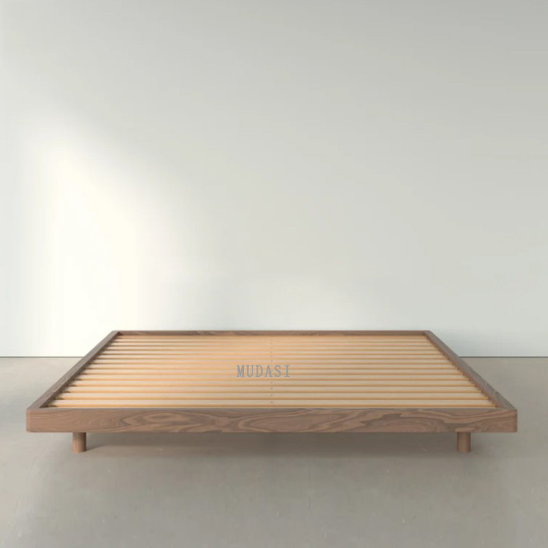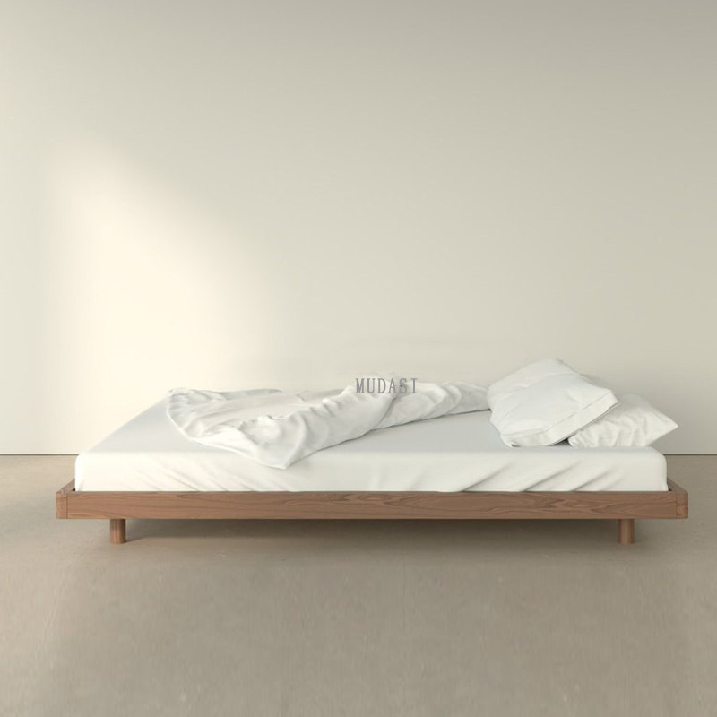 북유럽 원목 다다미 침대 오크 블랙 호두 미니멀리스트 침대 없음 일본식 B&B 낮은 침대 싱글 더블스토어 가기