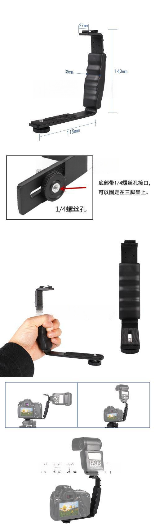 • 이중 구멍 휴대폰 홀더 + 1/4 이중층 나사 + L 프레임
