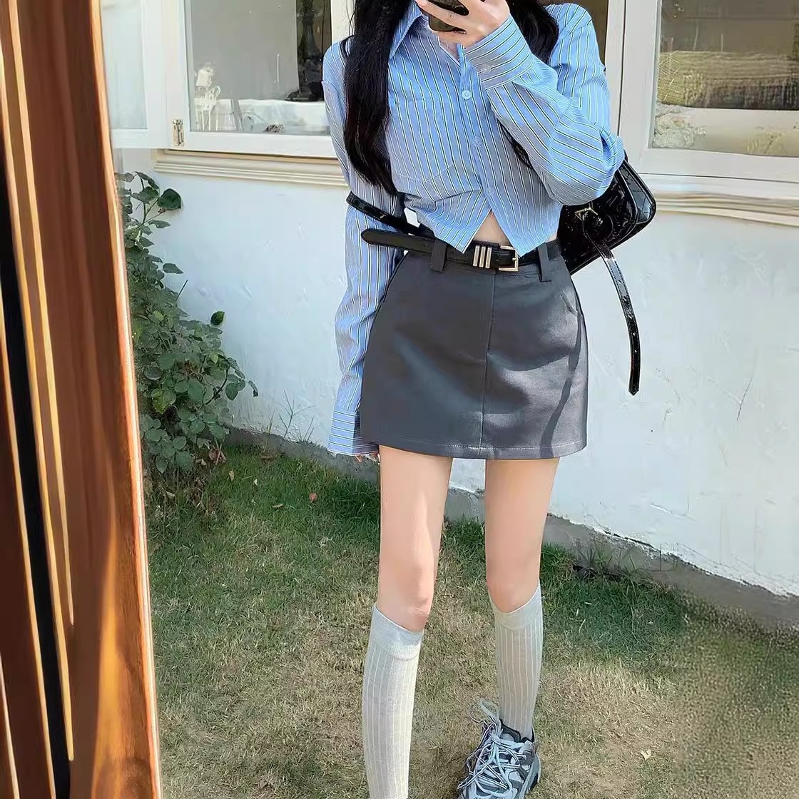 2025 여름 신작 여성용 하이엔드 그레이 A라인 슈트, 힙 커버, 노출 방지, 소형, 하이웨이스트 미니스토어 가기