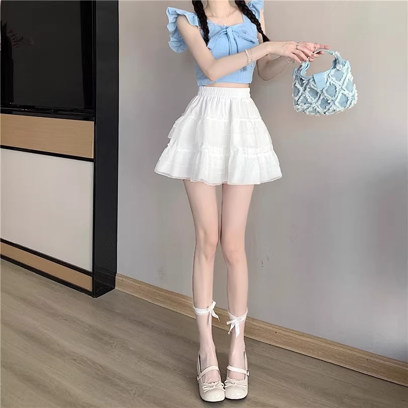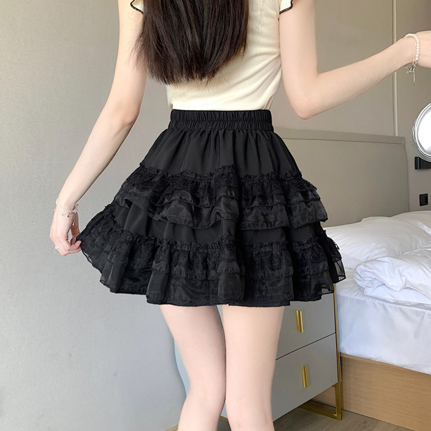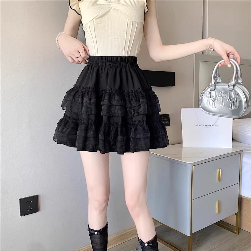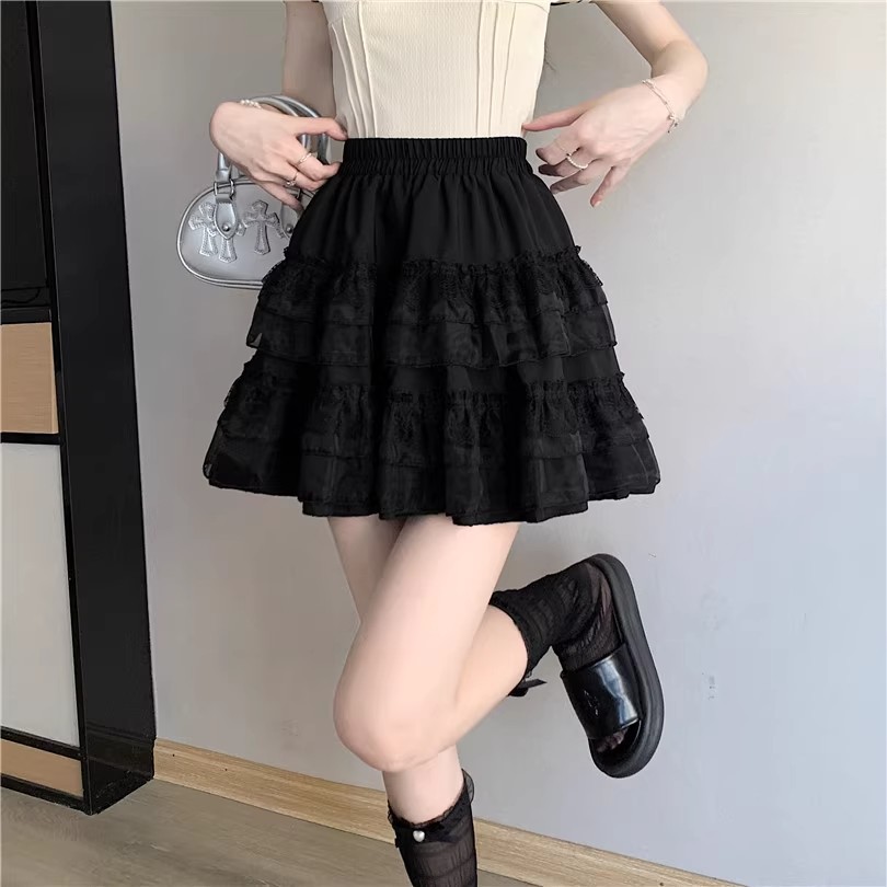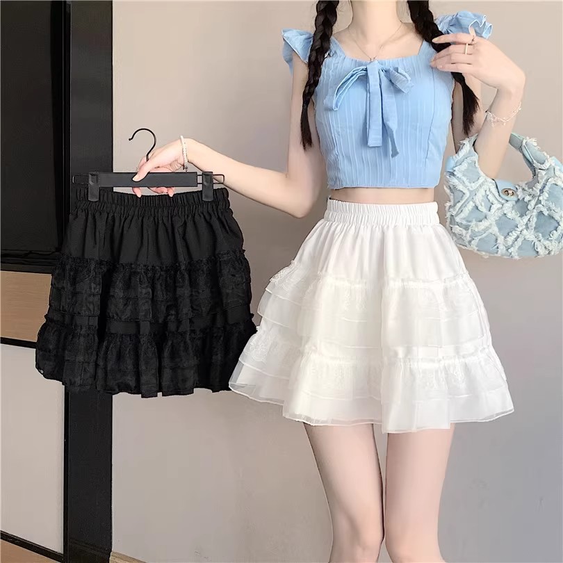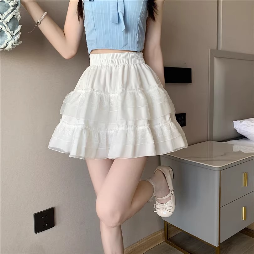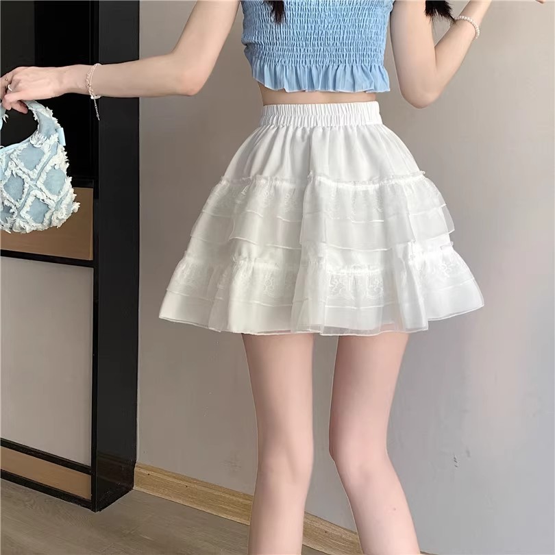 화이트 케이크 스커트 여성 여름 슈퍼 요정 레이스 스커트 2025 새로운 하이 웨이스트 슬림 스커트 푹신한 A 라인 스커트스토어 가기
