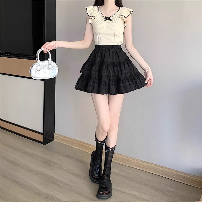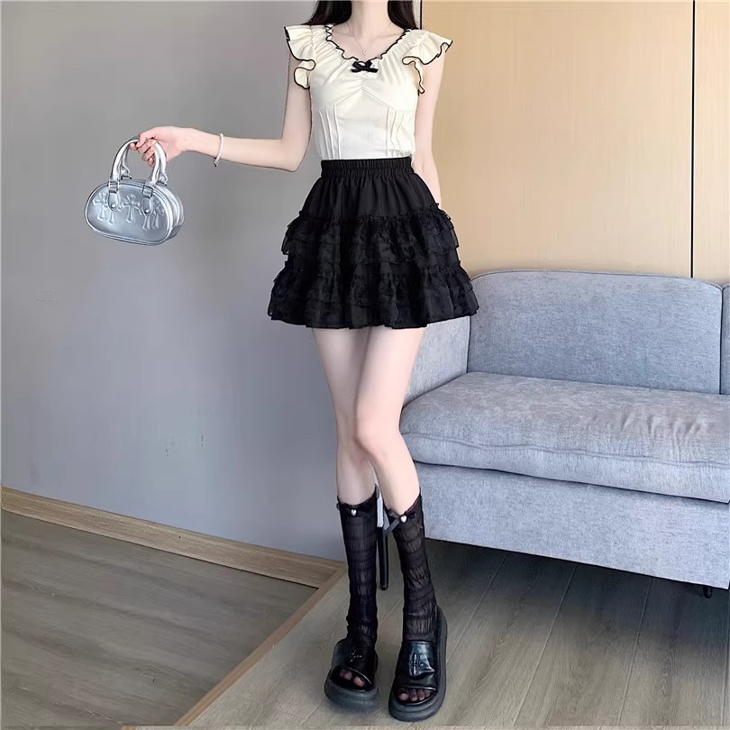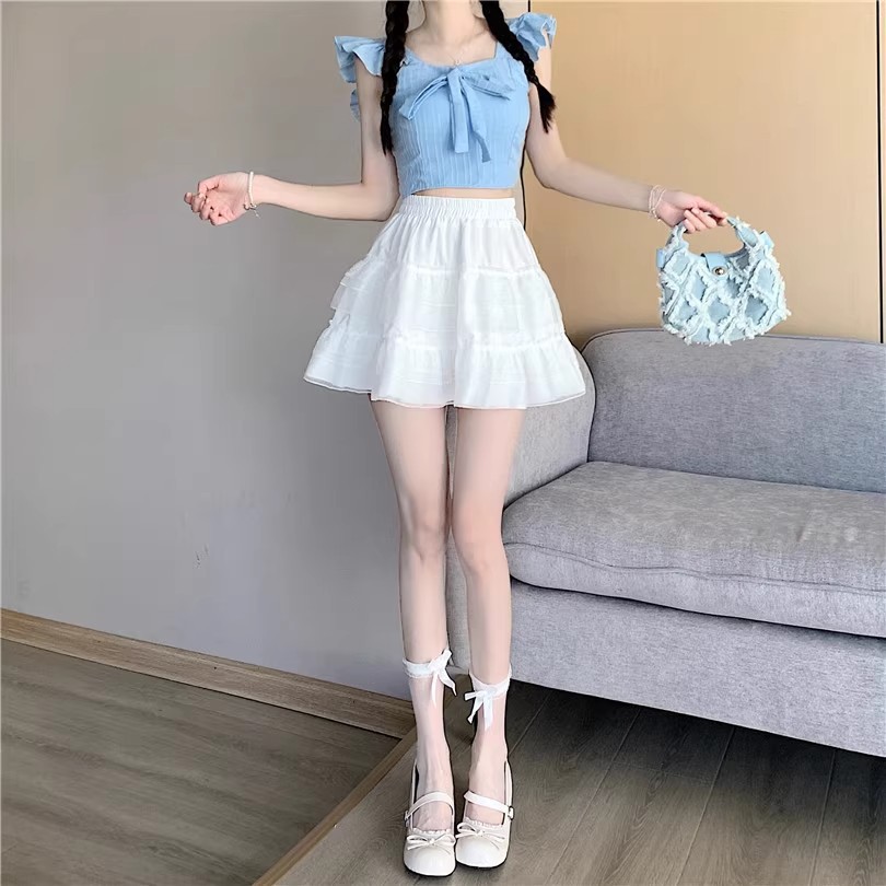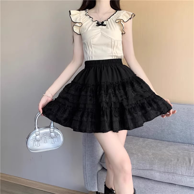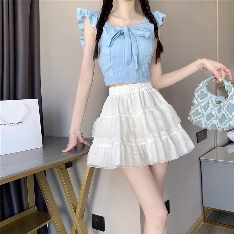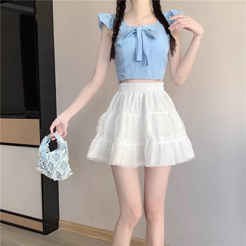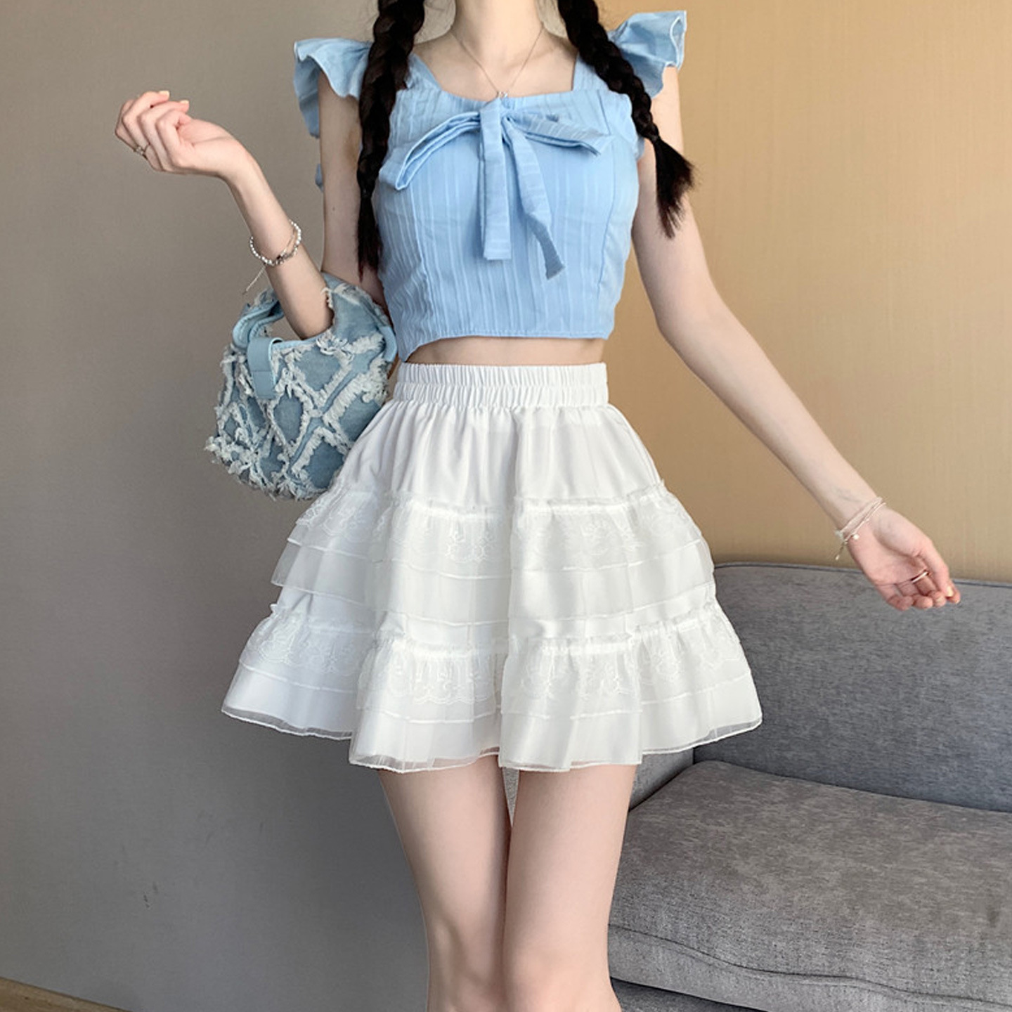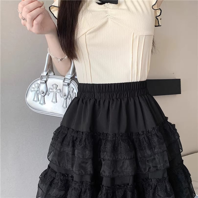 화이트 케이크 스커트 여성 여름 슈퍼 요정 레이스 스커트 2025 새로운 하이 웨이스트 슬림 스커트 푹신한 A 라인 스커트스토어 가기