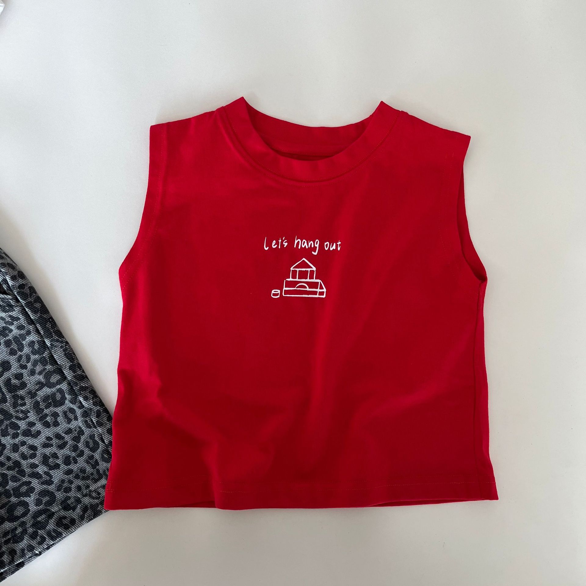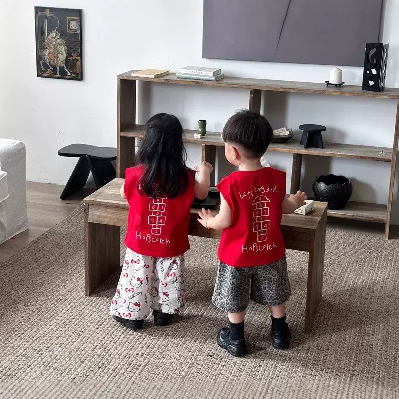 [디지털 조끼] 2025 한국어 버전 아동 여름 민소매 티셔츠 레드 디지털 프린트 조끼