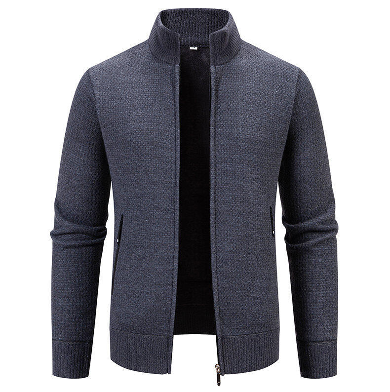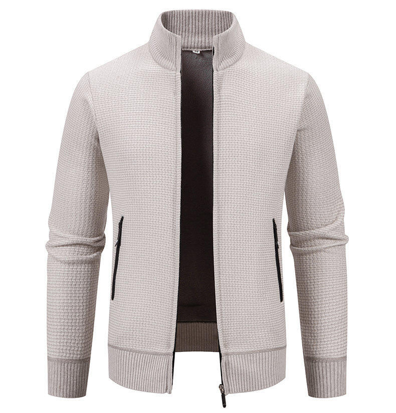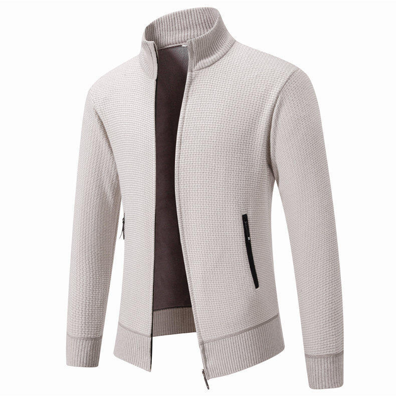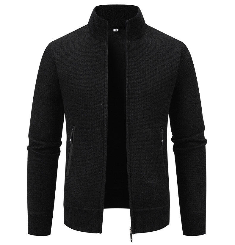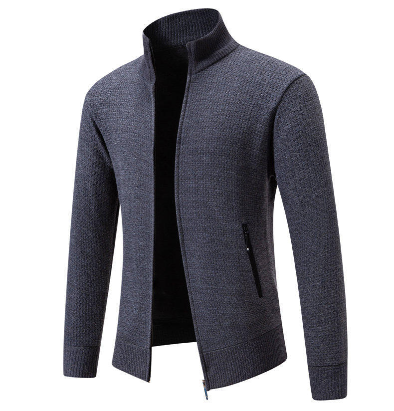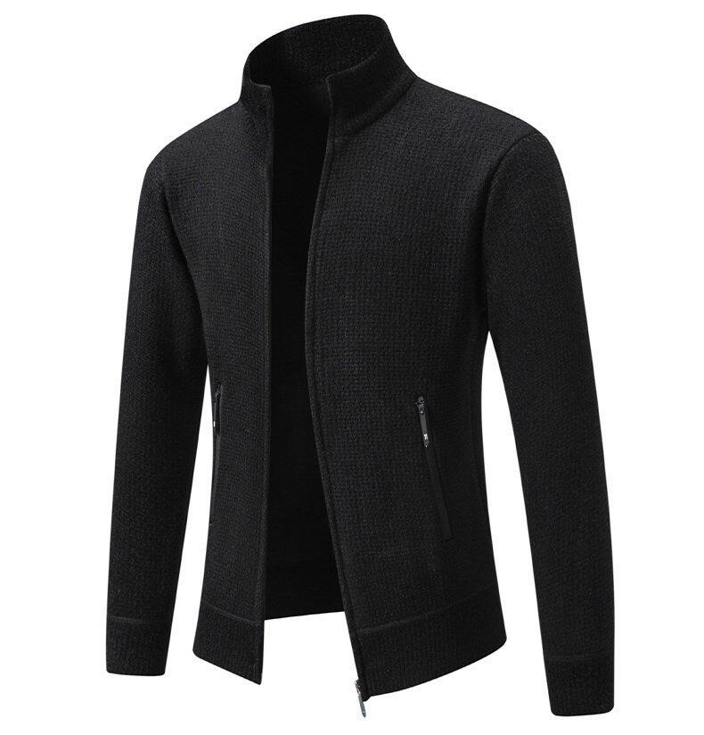 가을, 겨울 새로운 크로스 보더 남성 스웨터 카디건 플러스 벨벳 두꺼운 따뜻한 스탠드 업 칼라 캐주얼 남성 스웨터 재킷