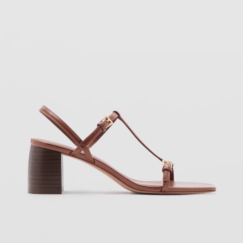 2025년 여름 신상 오픈 토 패션 프렌치 스타일 원 스트랩 로마 슈즈 여성용 하이힐 스퀘어 토 두꺼운 힐 샌들