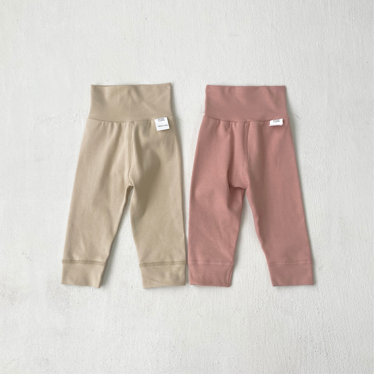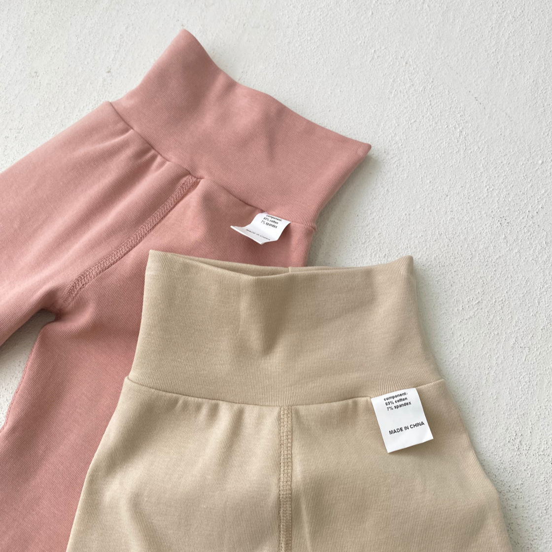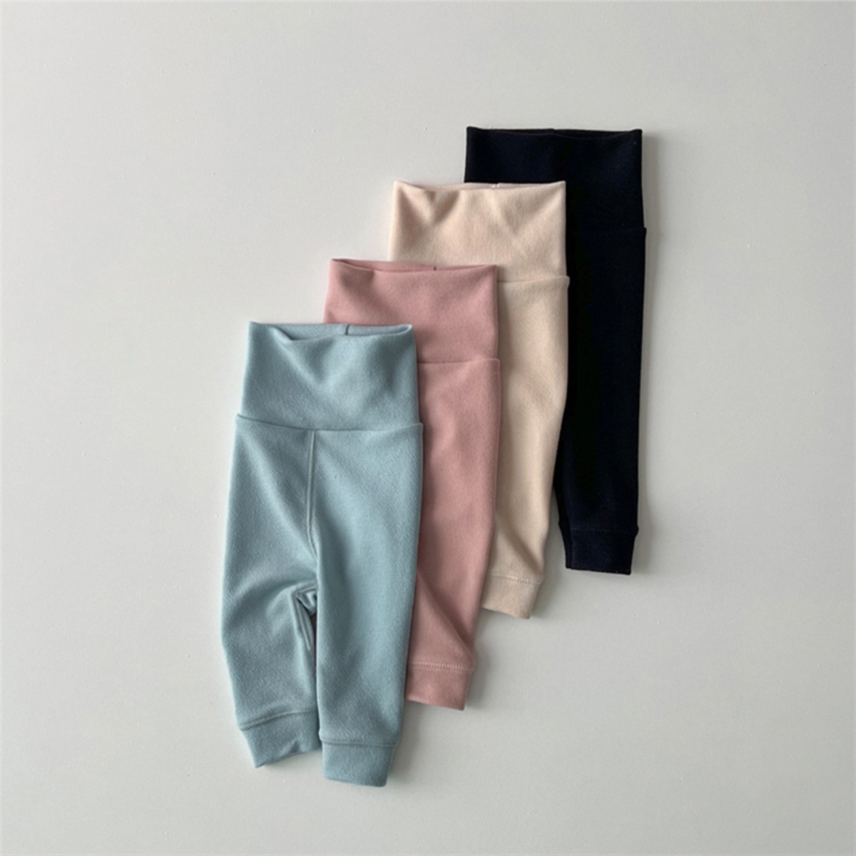 2025 새로운 가을 스타일 소년과 소녀 솔리드 컬러 하이 웨이스트 배꼽 보호 레깅스 신생아 가을 바지 소녀 바지스토어 가기