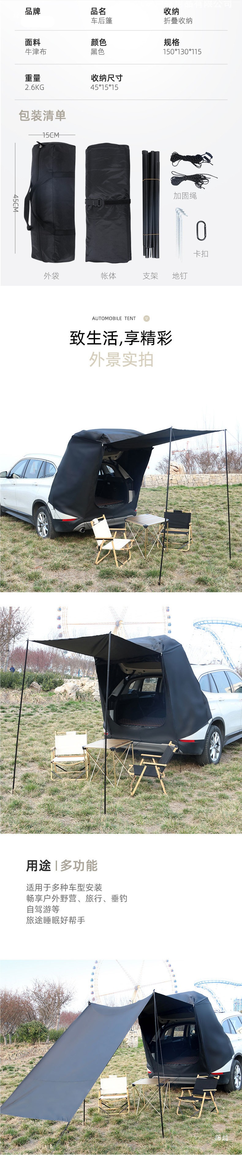 트렁크 텐트 자동차 자동차 야외 지붕 낚시 캐노피 피크닉 천막 SUV 자동차 테일 확장스토어 가기