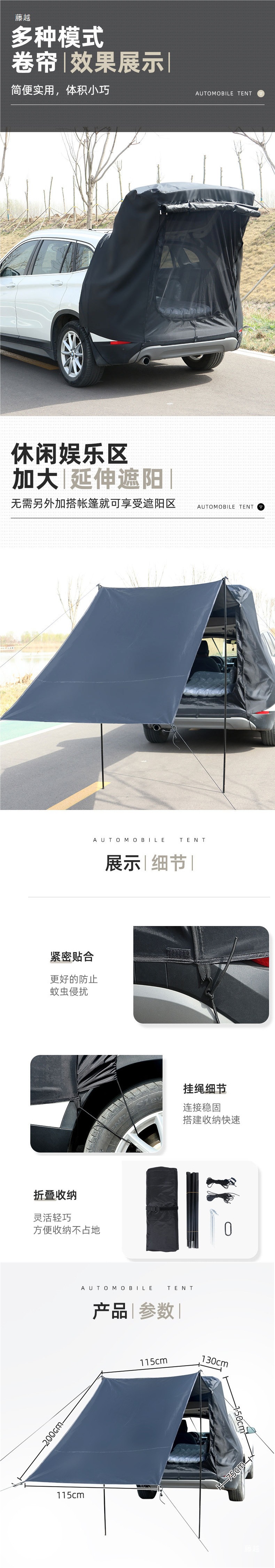 트렁크 텐트 자동차 자동차 야외 지붕 낚시 캐노피 피크닉 천막 SUV 자동차 테일 확장