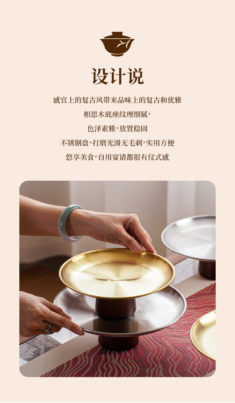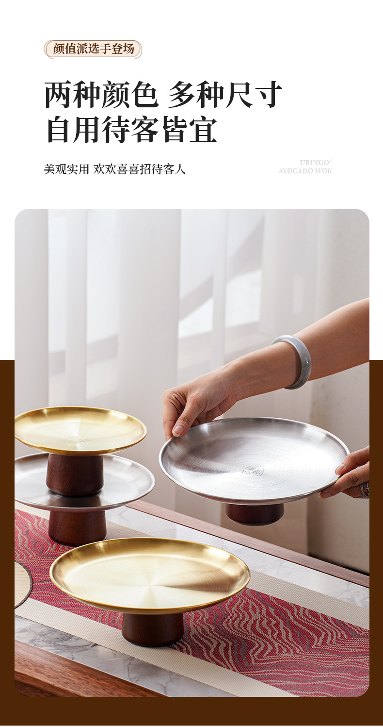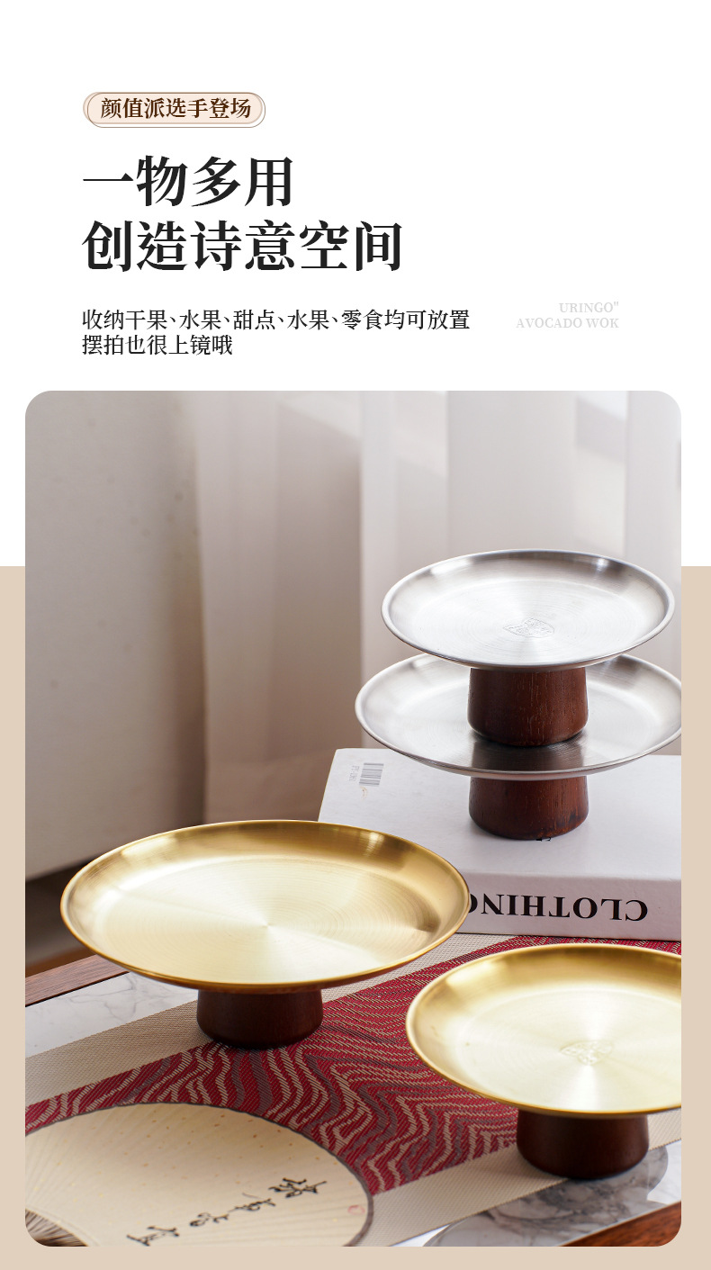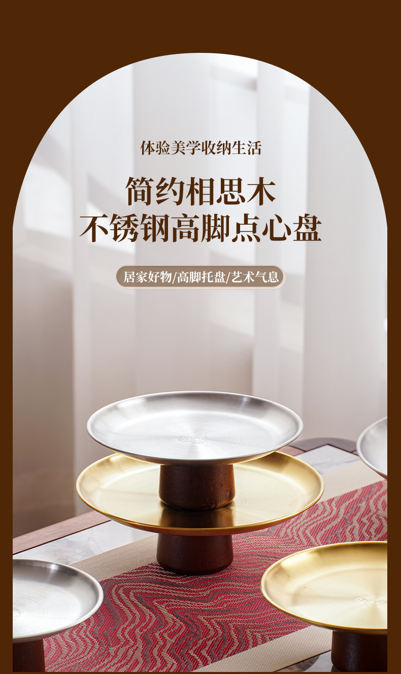 높은 디저트 접시 스테인레스 스틸 가정용 케이크 접시 거실 사탕 접시 호텔 애프터눈 티 디저트 나무 발 트레이