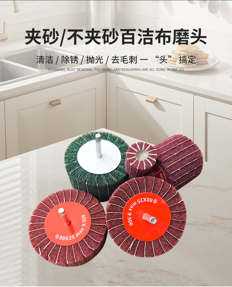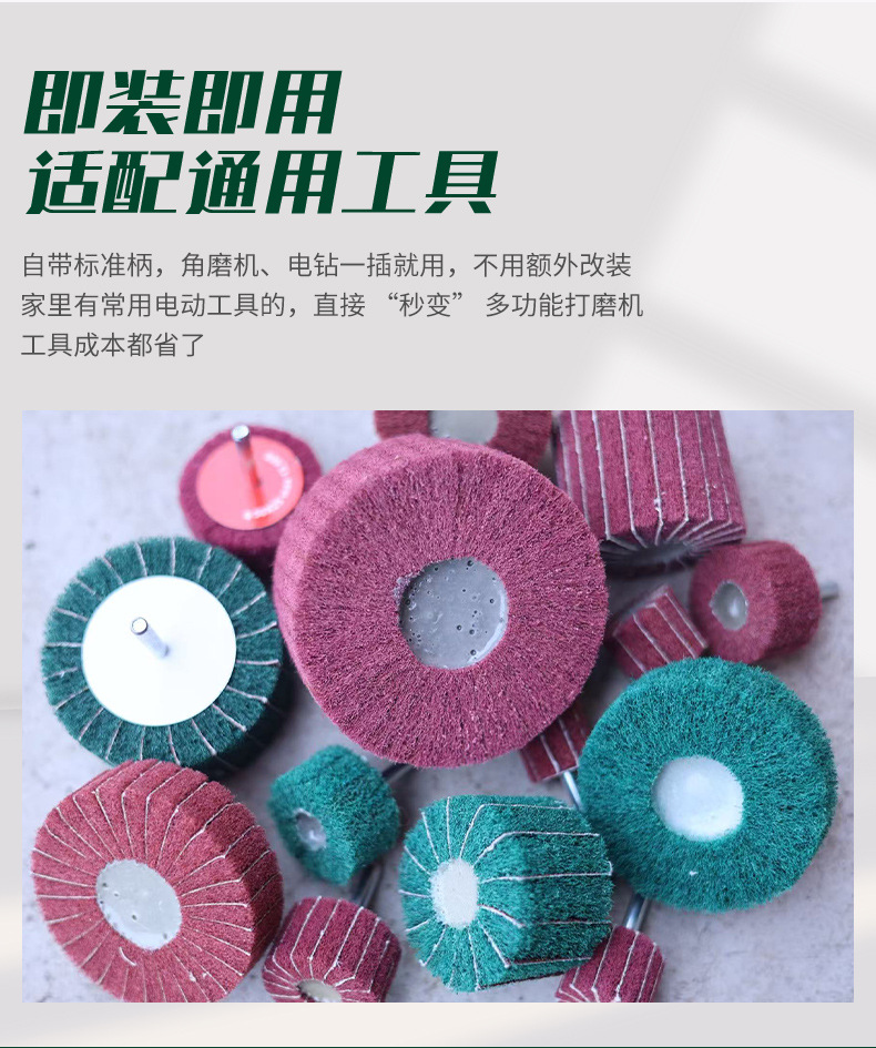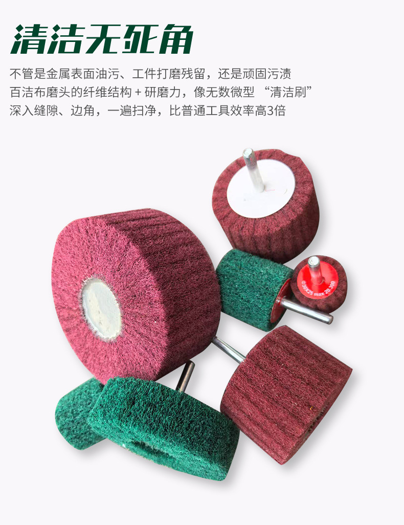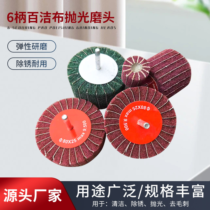 수세미 연삭 헤드 6mm 핸들 샌딩 천 나일론 섬유 전기 연삭 헤드 연마 녹 제거 스테인레스 스틸 브러시 휠 연삭 헤드스토어 가기