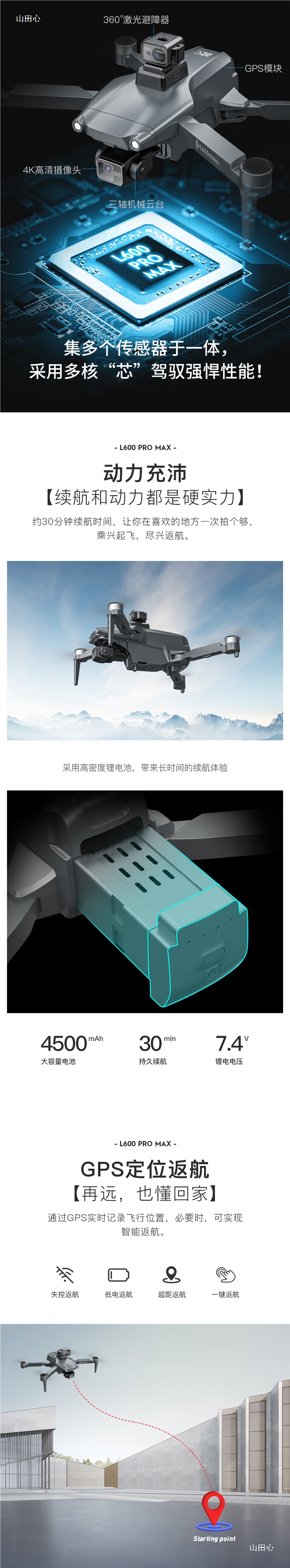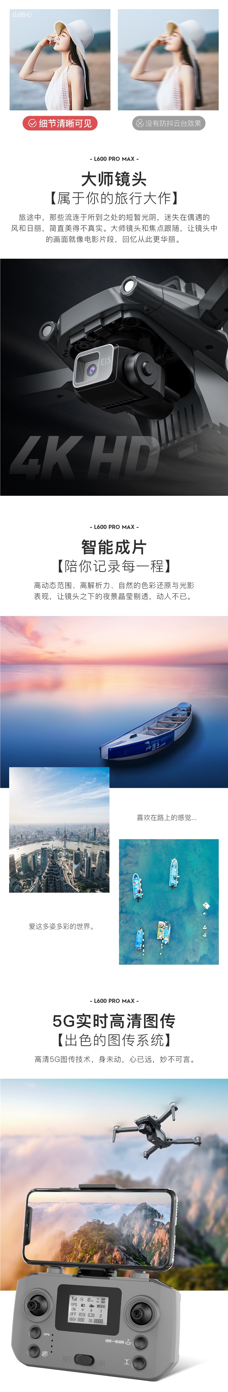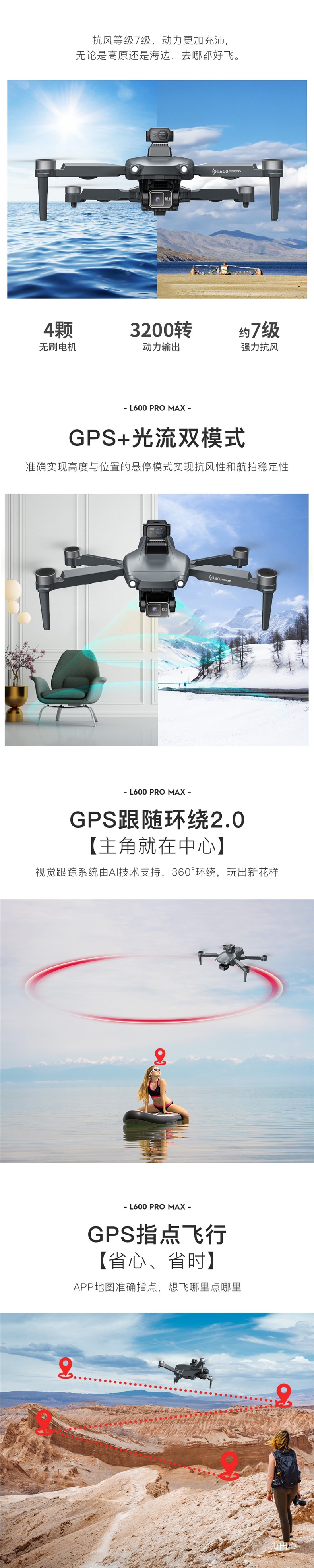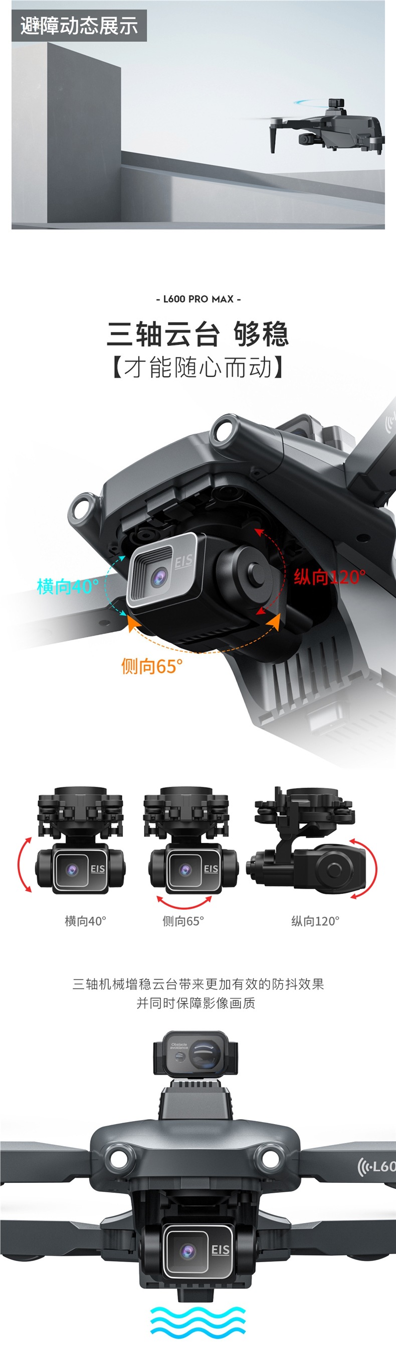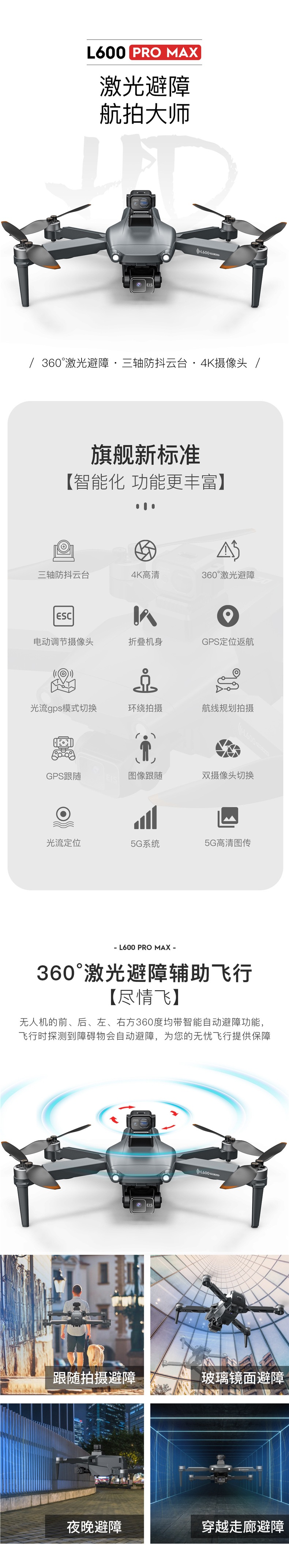 장애물 회피 기능이 있는 L600PROMAX 3축 기계식 짐벌 GPS 브러시리스 4K HD 항공 사진 접이식 원격 제어 드론스토어 가기