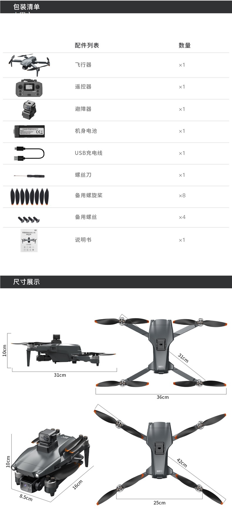 • 5G 4K+ 3축 기계식 안정화 짐벌(장애물 회피 장치 없음) 백팩 - 단일 배터리 버전