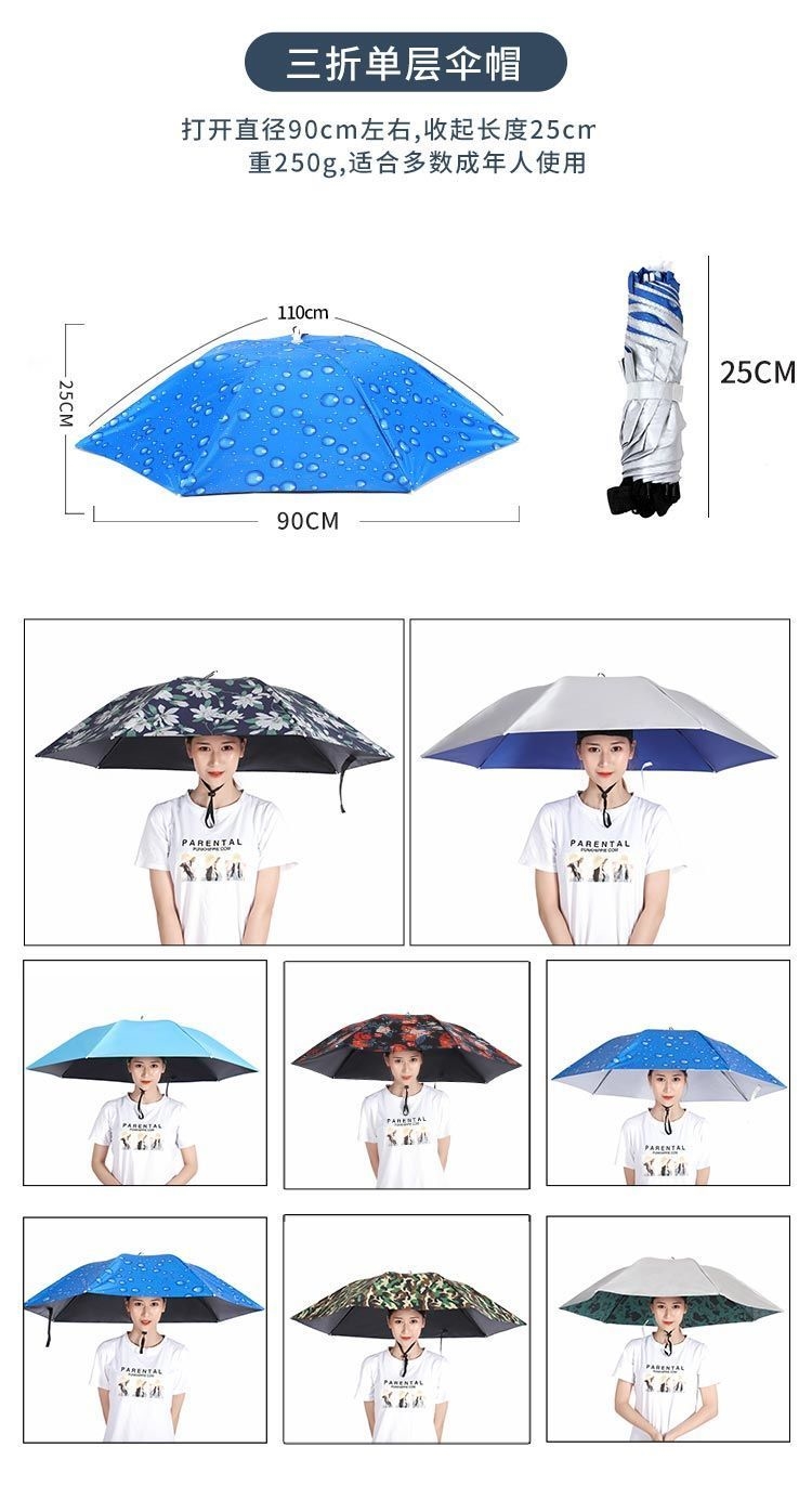 머리 장착형 낚시 우산, 야외 자외선 차단 우산, 새로운 비닐 접이식 우산 모자, 차 따기 낚시 장비, 모자 우산스토어 가기