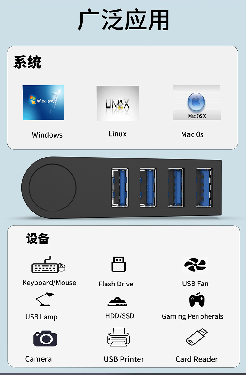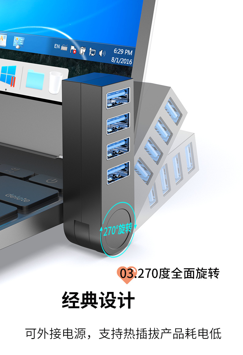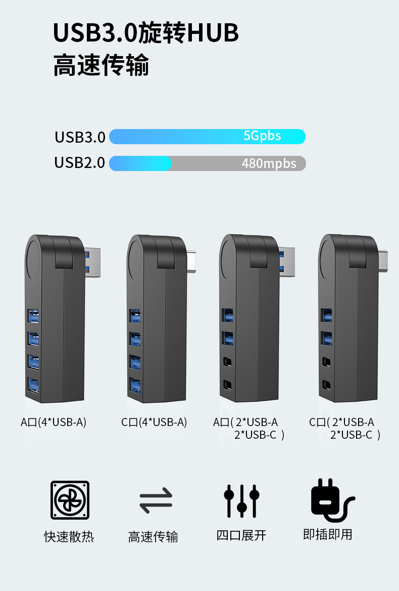 270도 회전 USB 허브 4-in-1 고속 3.0 허브 컴퓨터 분배기 4포트 유형-c 도킹 스테이션스토어 가기