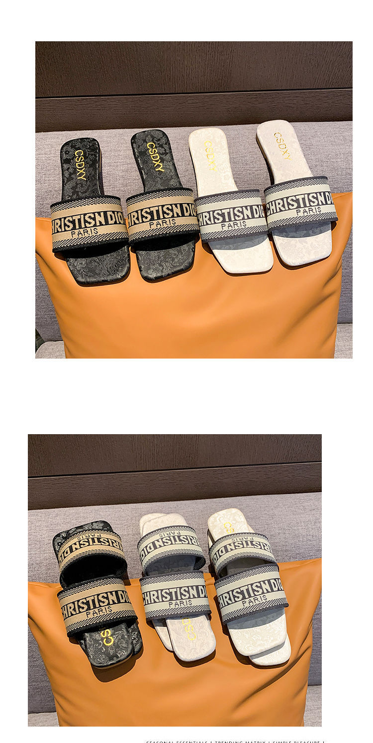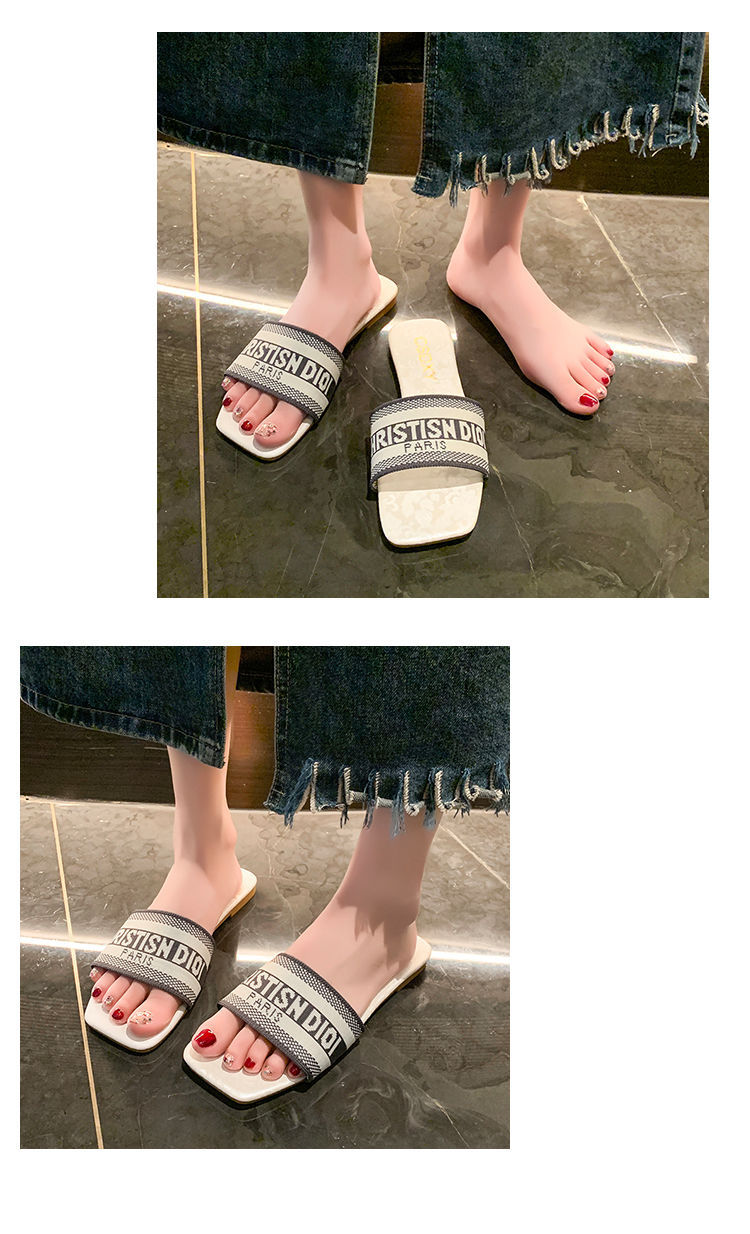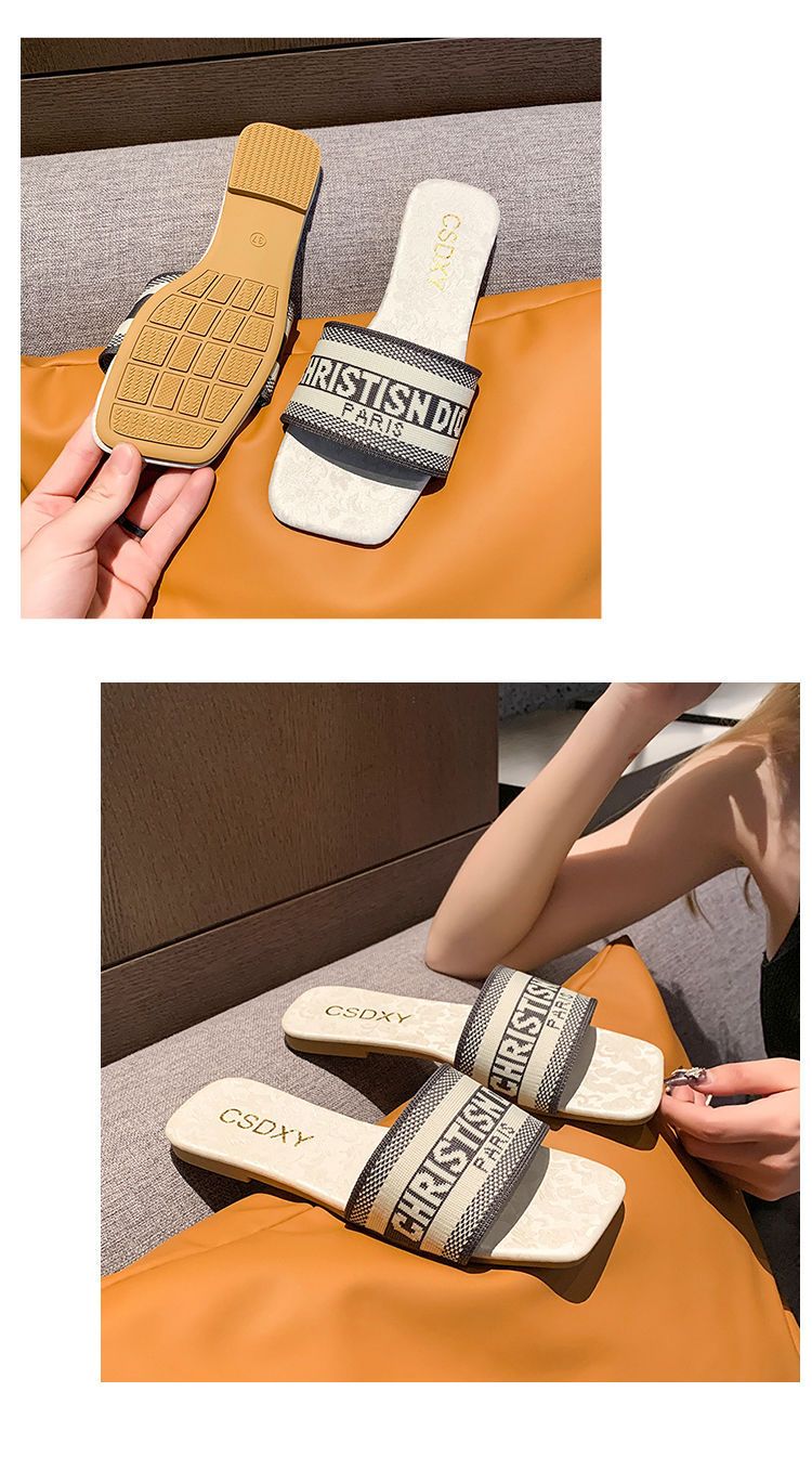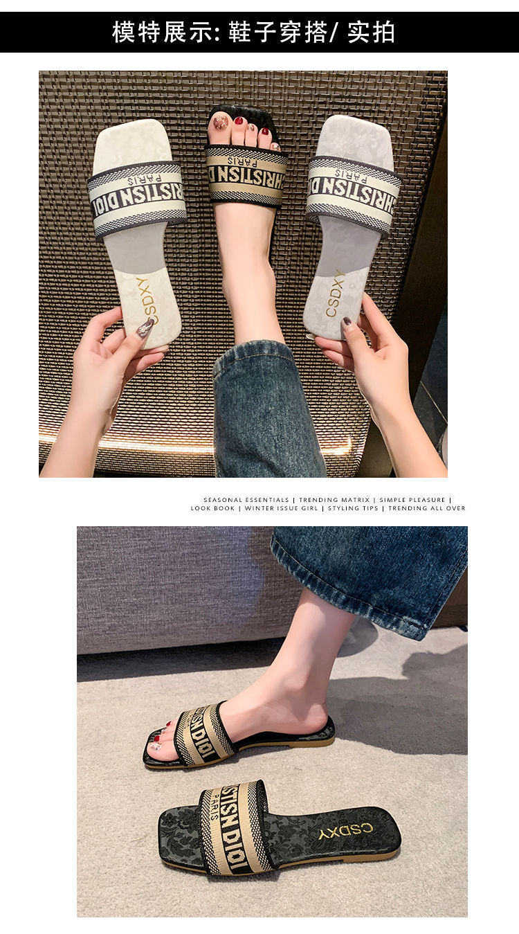 여성용 알파벳 자수 슬리퍼 2025 여름 신작 패션 플랫 바닥 아우터 비치 샌들 트렌디스토어 가기