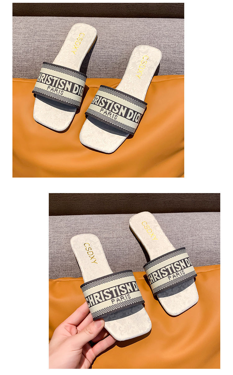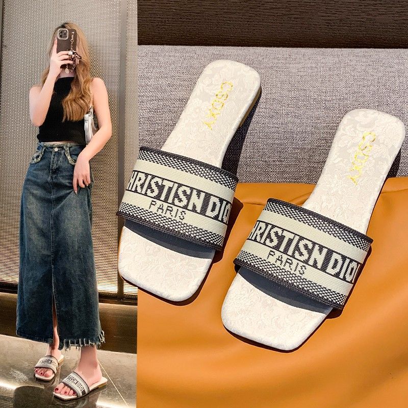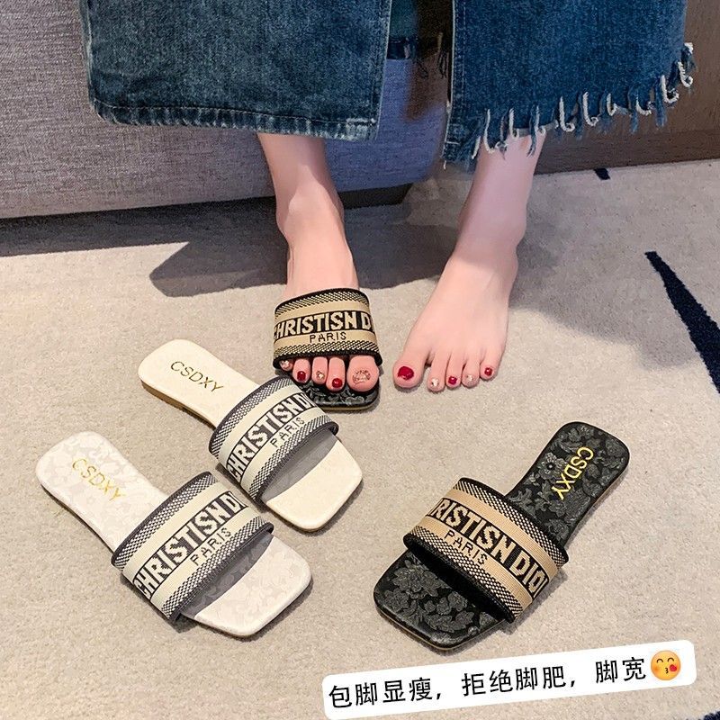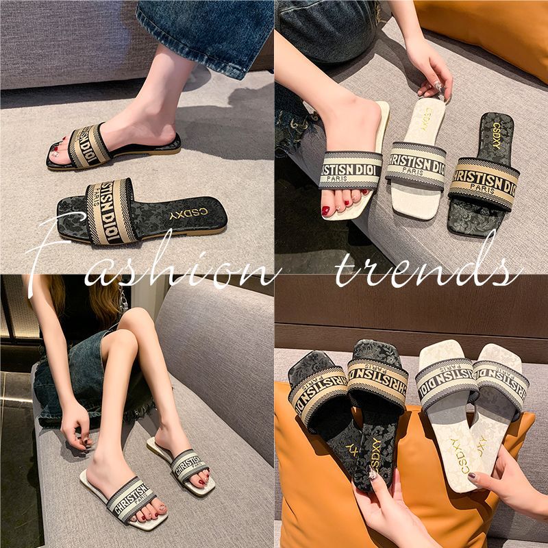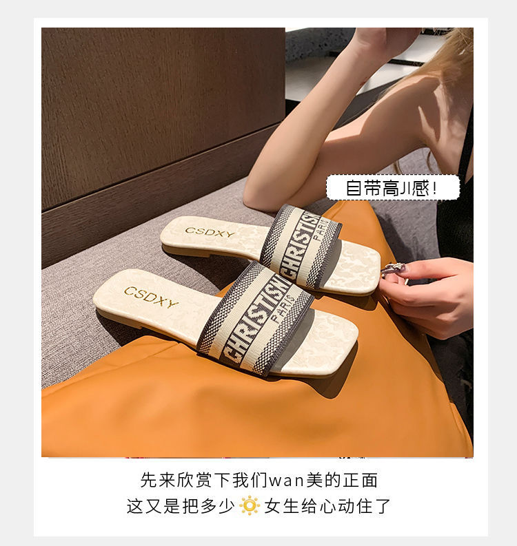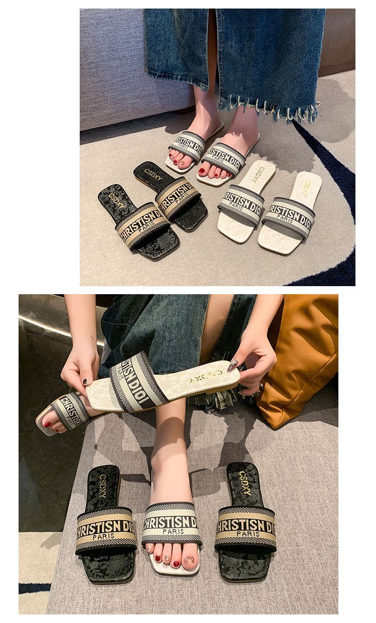 여성용 알파벳 자수 슬리퍼 2025 여름 신작 패션 플랫 바닥 아우터 비치 샌들 트렌디스토어 가기