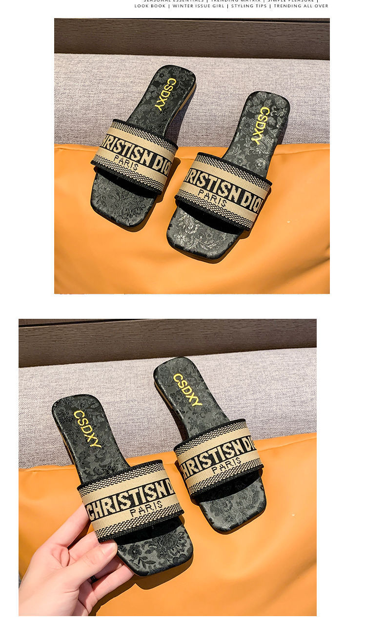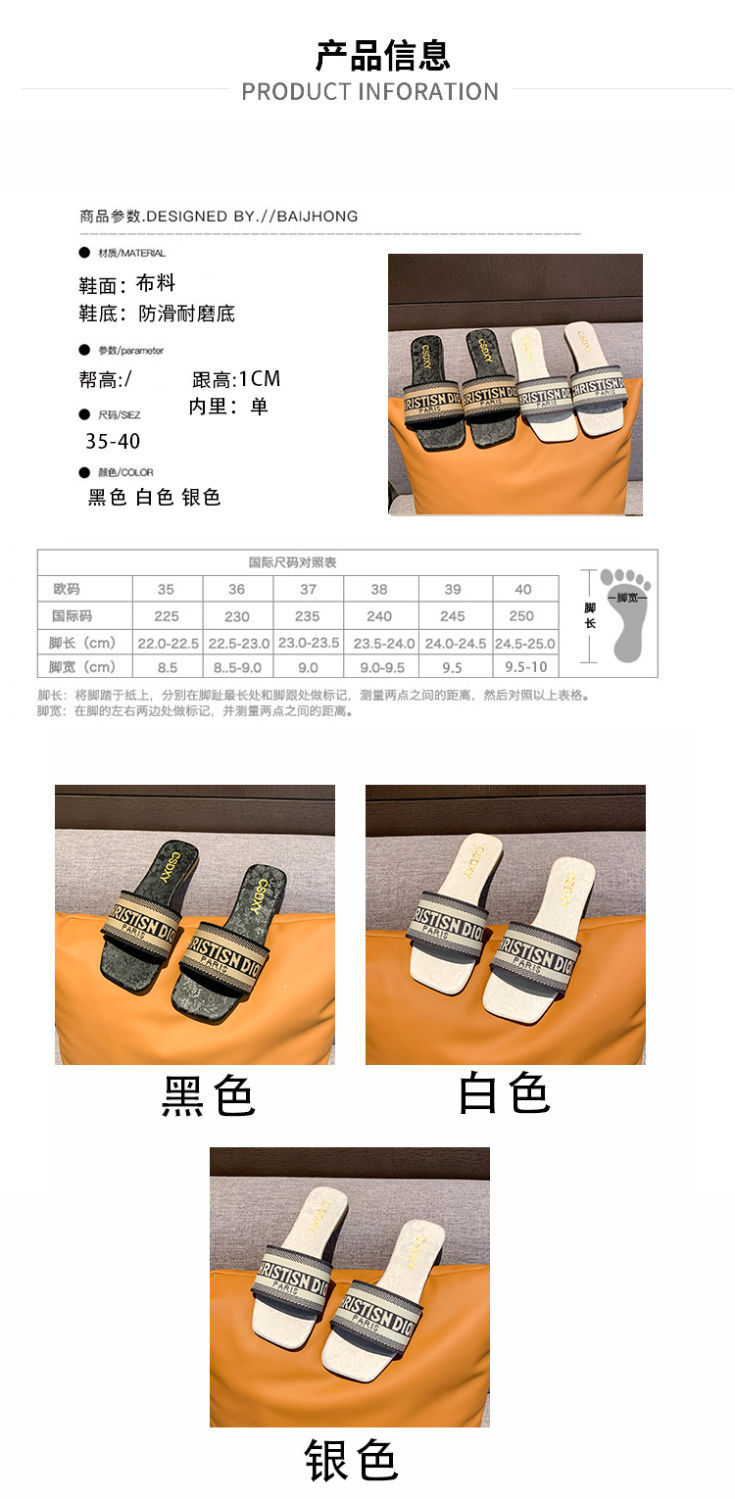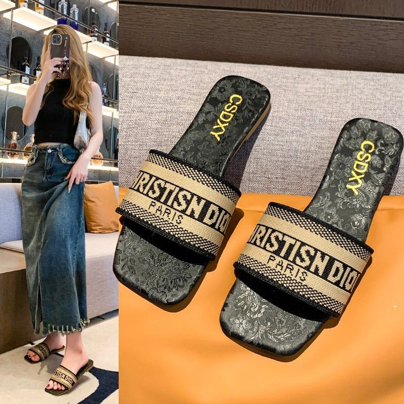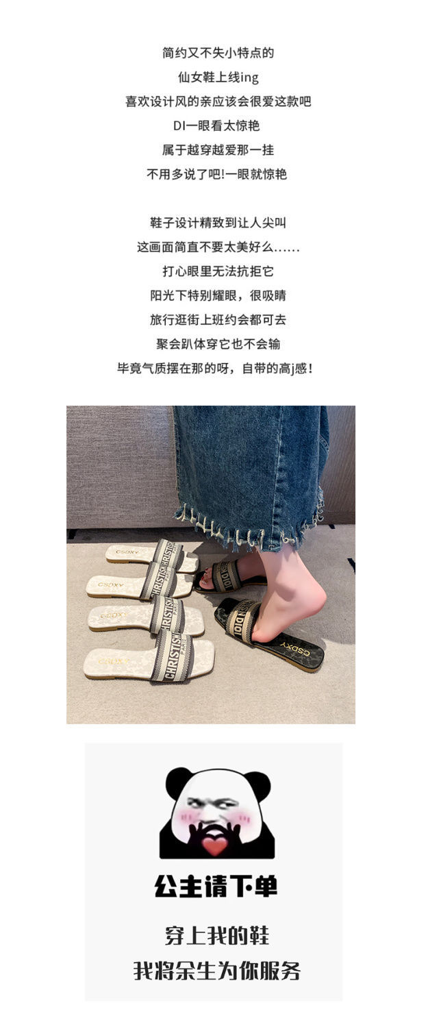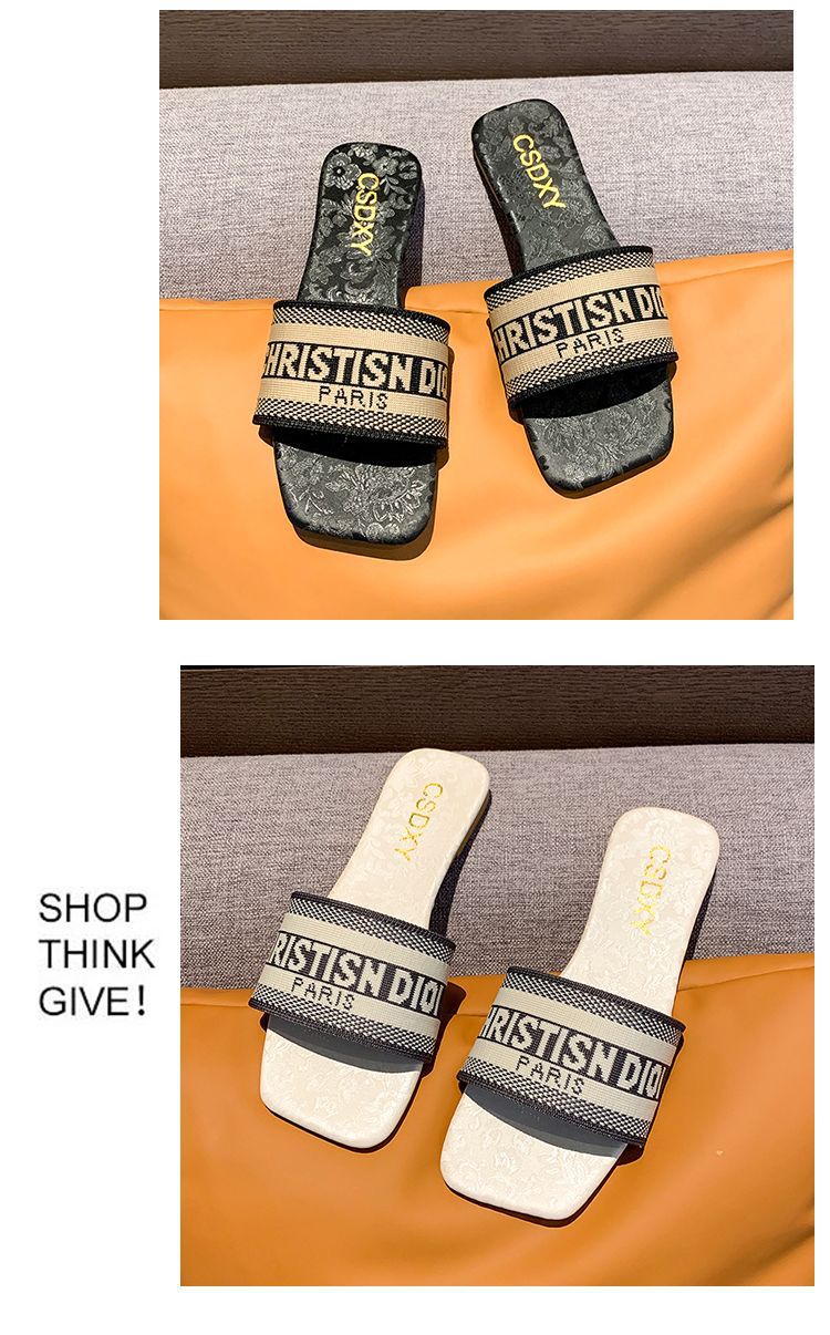 여성용 알파벳 자수 슬리퍼 2025 여름 신작 패션 플랫 바닥 아우터 비치 샌들 트렌디스토어 가기
