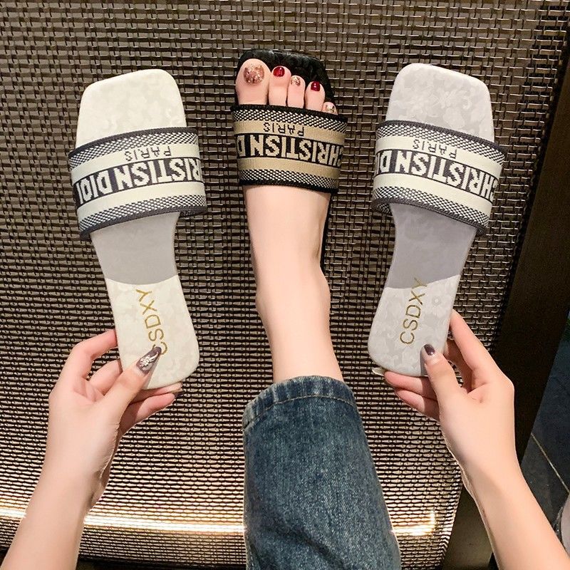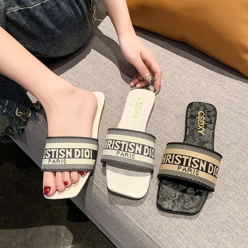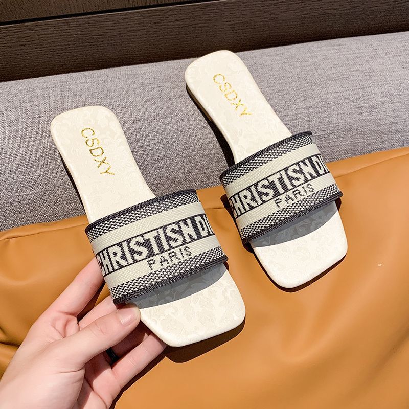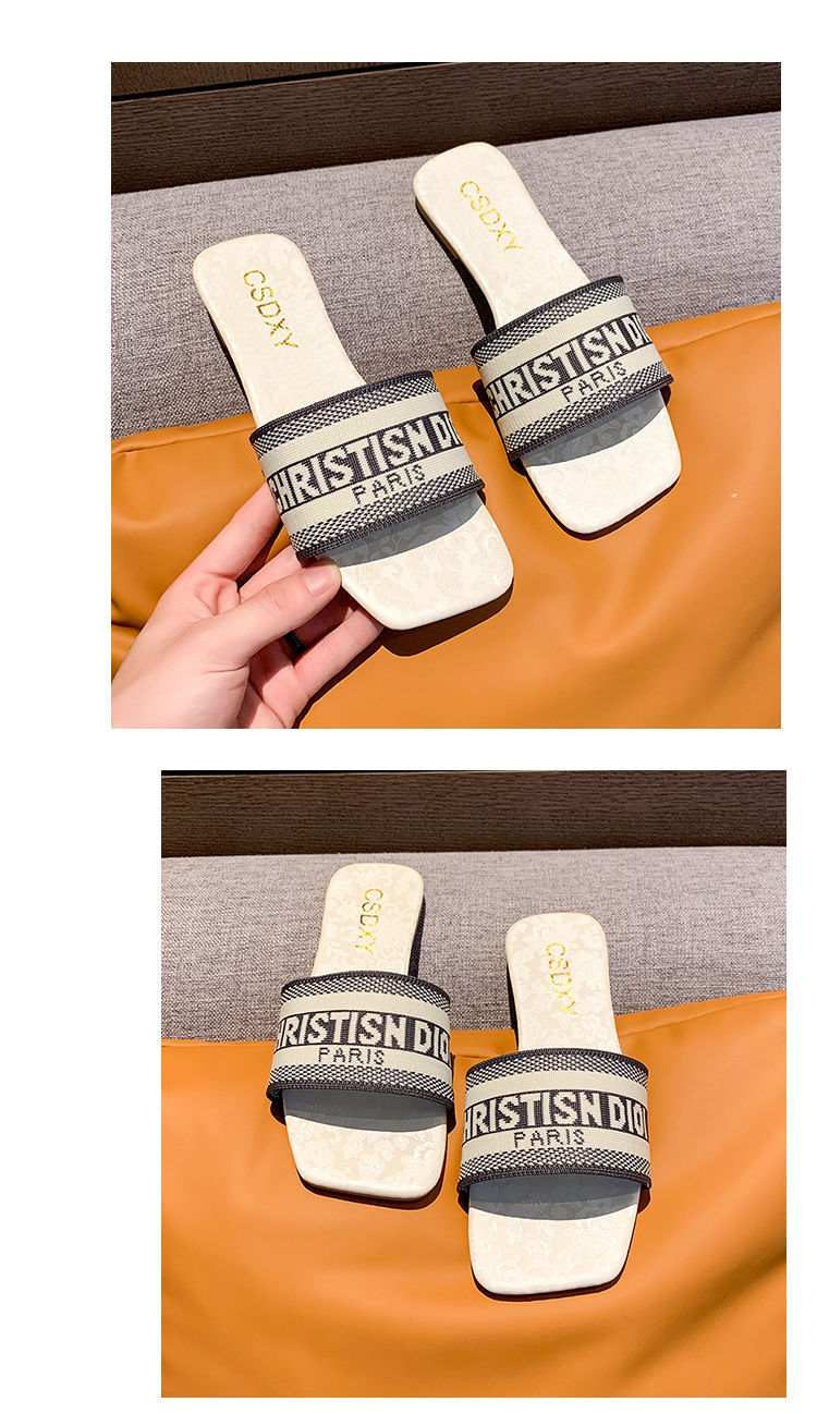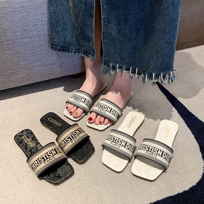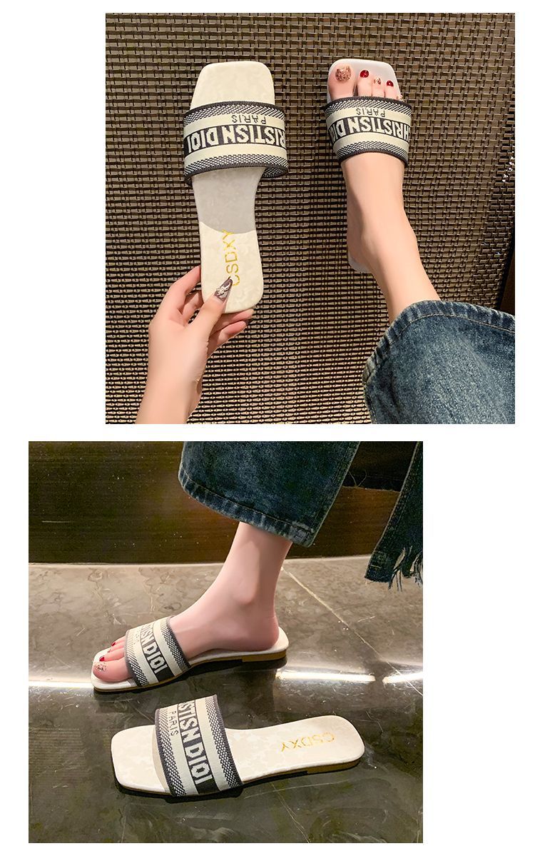 여성용 알파벳 자수 슬리퍼 2025 여름 신작 패션 플랫 바닥 아우터 비치 샌들 트렌디