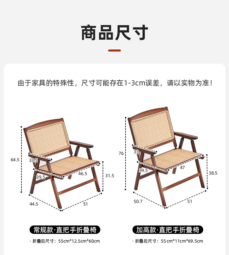 • 일반 직선 손잡이 접이식 의자 [면 및 린넨 쿠션 포함]