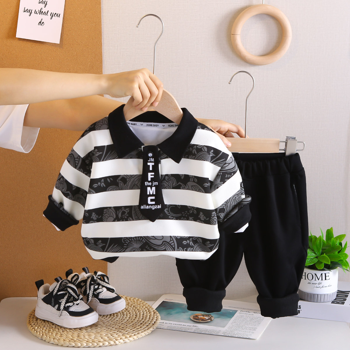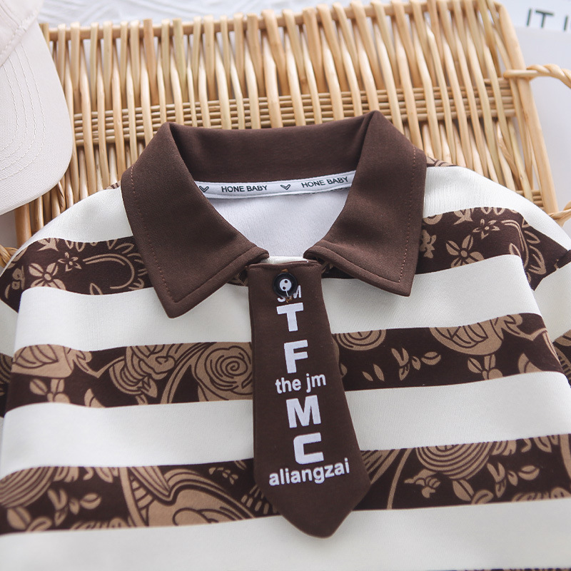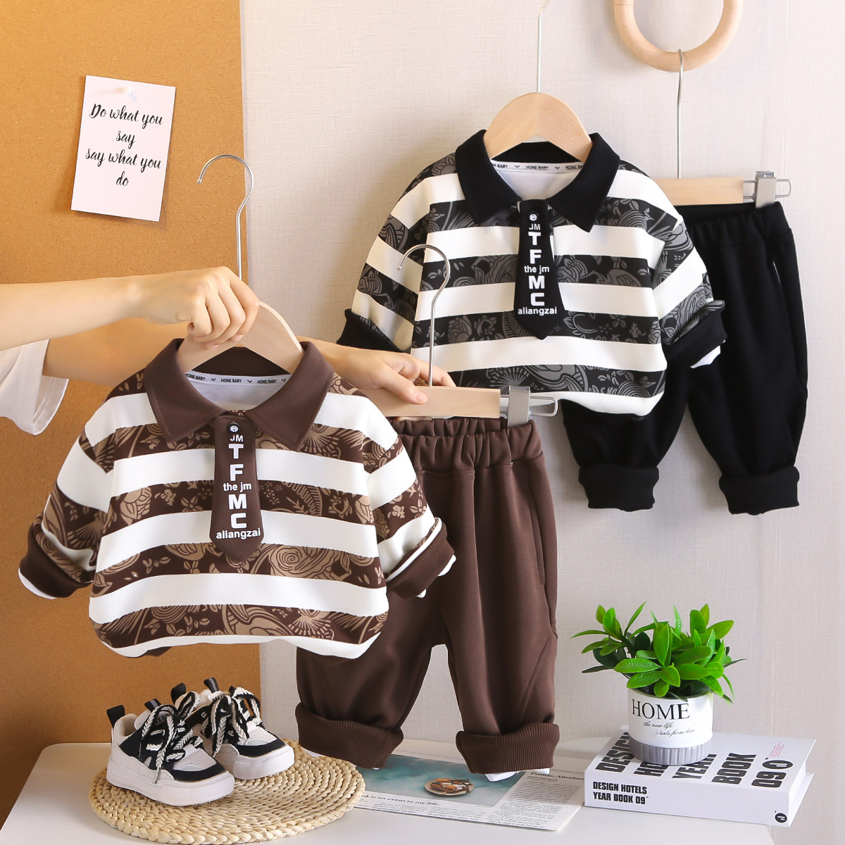 Panda 아동 의류 소년 가을 의류 정장 아동 스트라이프 폴로 셔츠 스웨트 셔츠 2025 아기 봄, 가을 캐주얼 의류스토어 가기