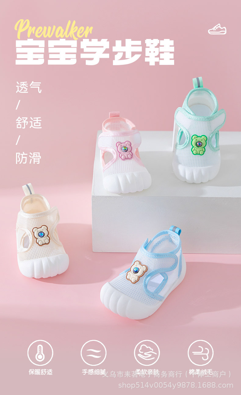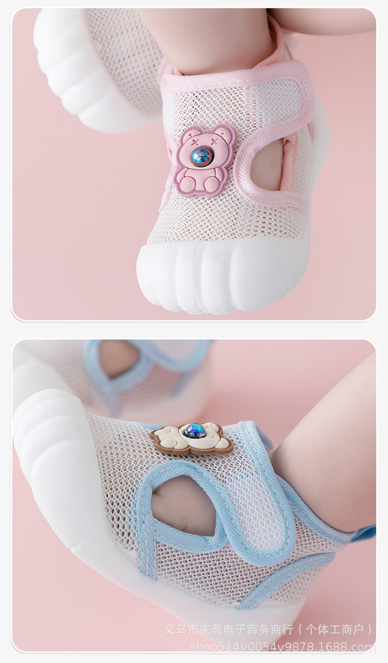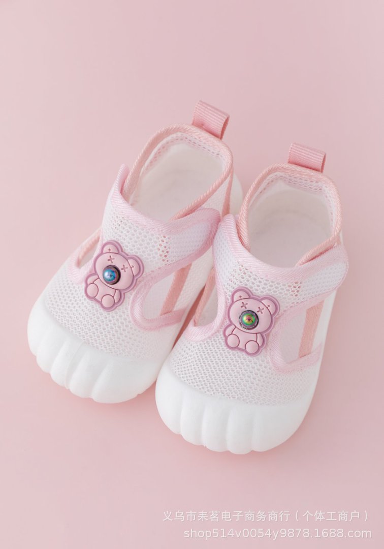 남녀 어린이용 1-3세 메쉬 아동화, 유아용 걸음마 신발, 미끄럼 방지 프리워킹 슈즈, 스페이스 베어 아동용 얕은 입구 신발스토어 가기