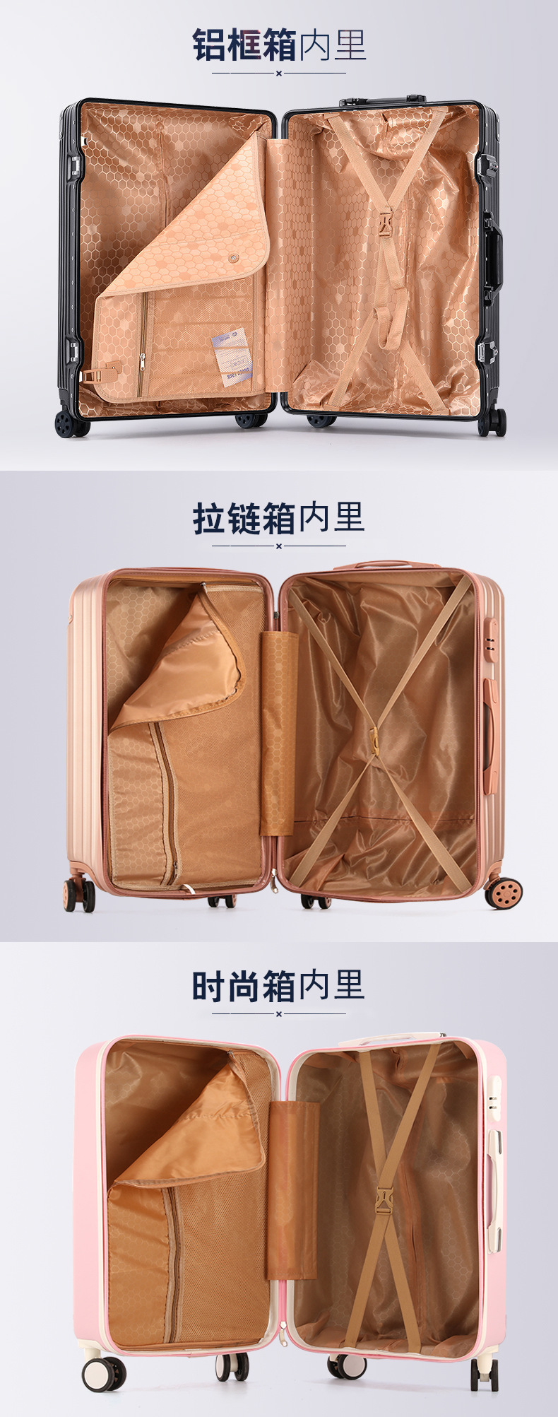 • 패셔너블한 지퍼 - [로즈 골드] 수납공간 안감