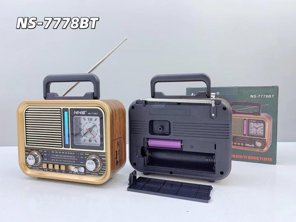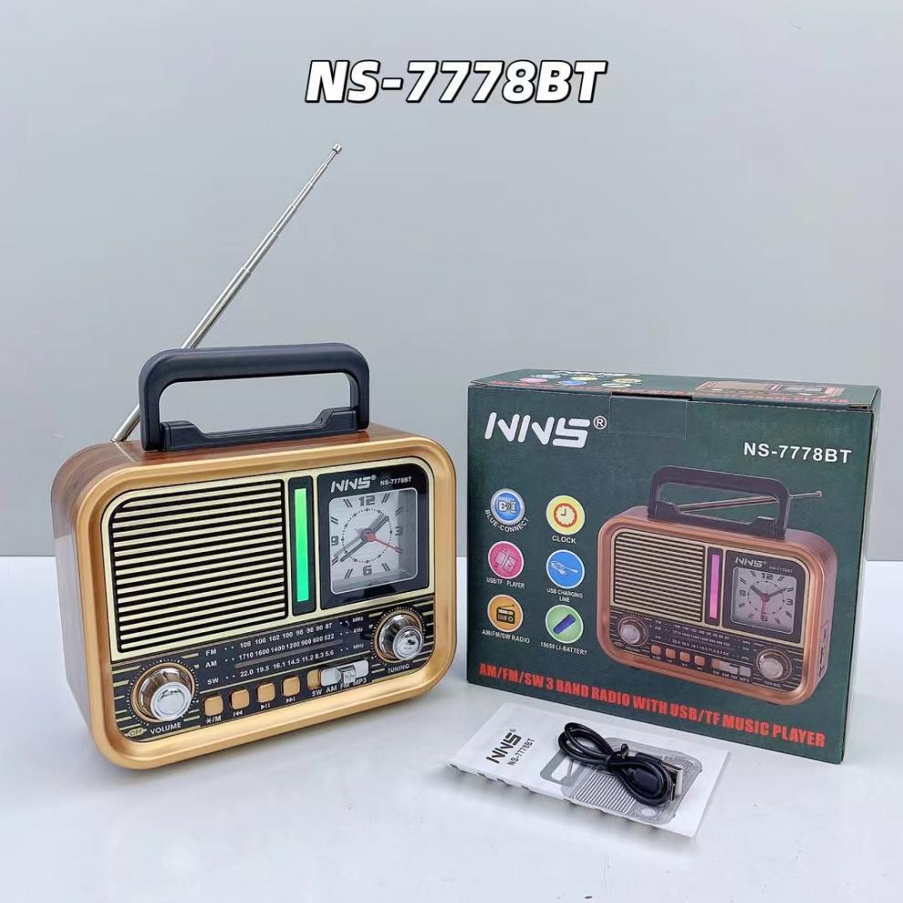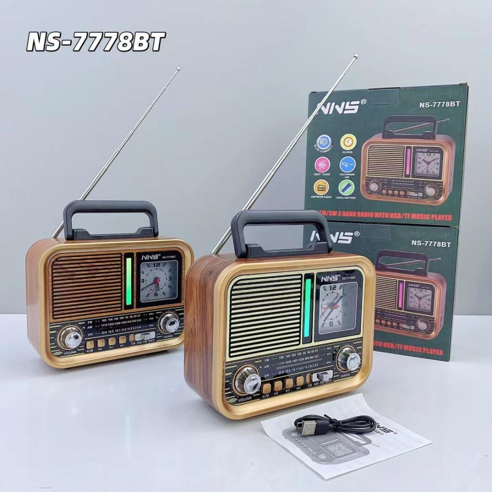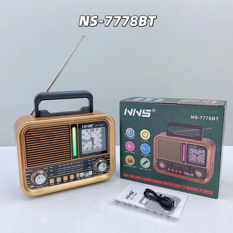 NS-7778BT 레트로 블루투스 스피커 목재 홈 서브우퍼 FM/AM/SW 3밴드 휴대용 라디오