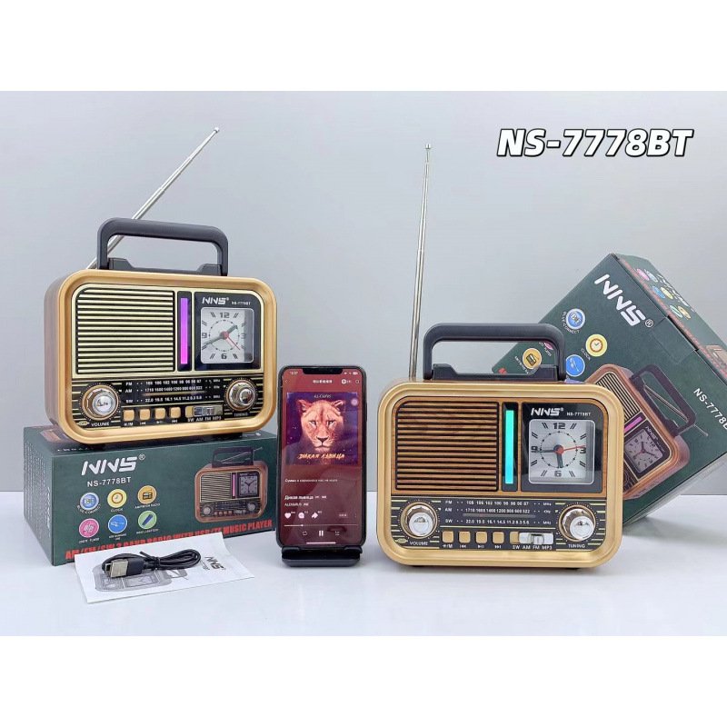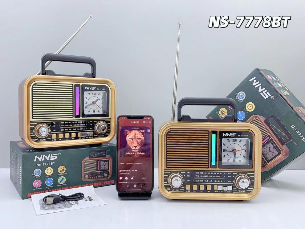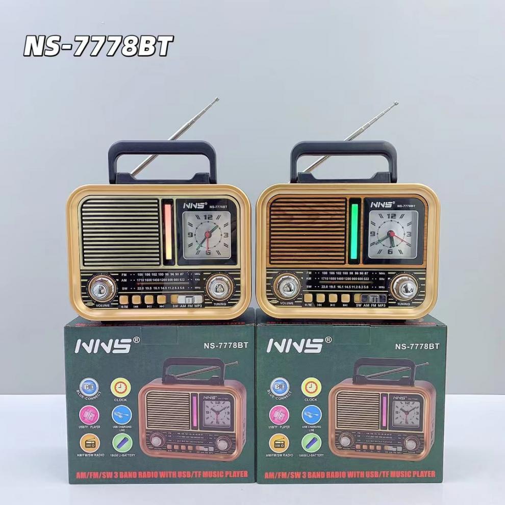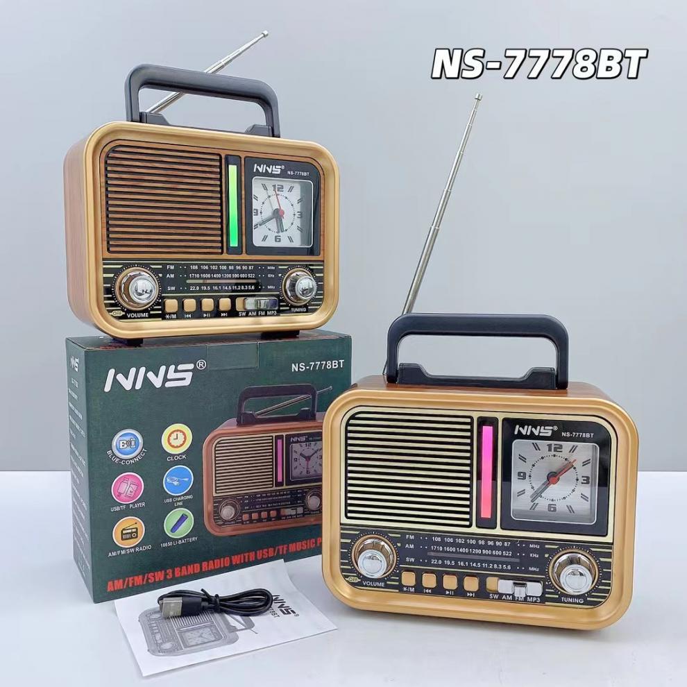 NS-7778BT 레트로 블루투스 스피커 목재 홈 서브우퍼 FM/AM/SW 3밴드 휴대용 라디오