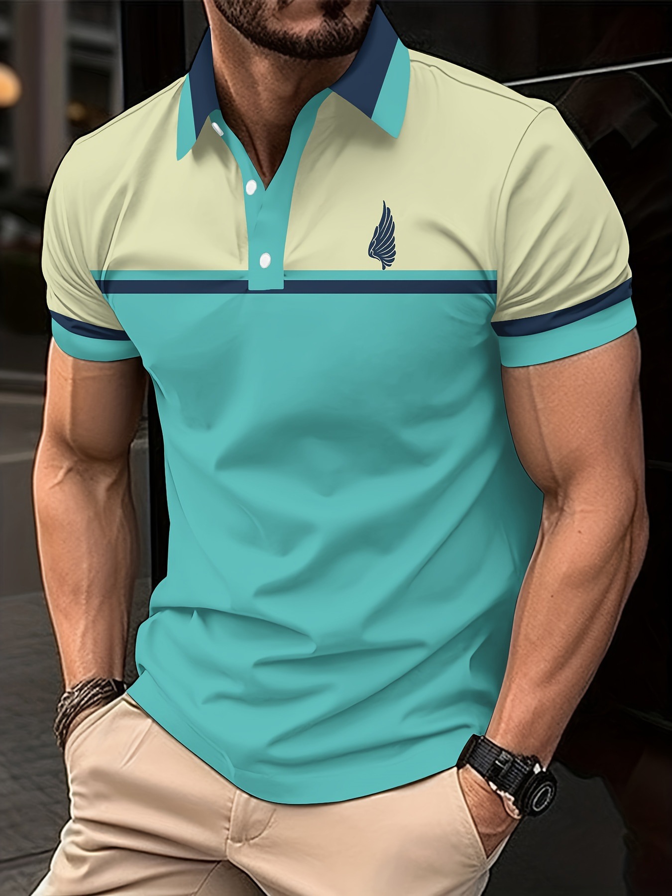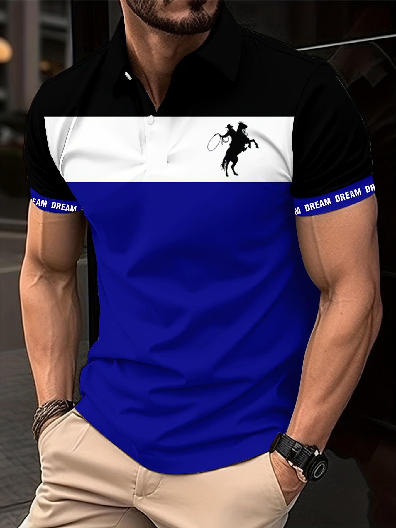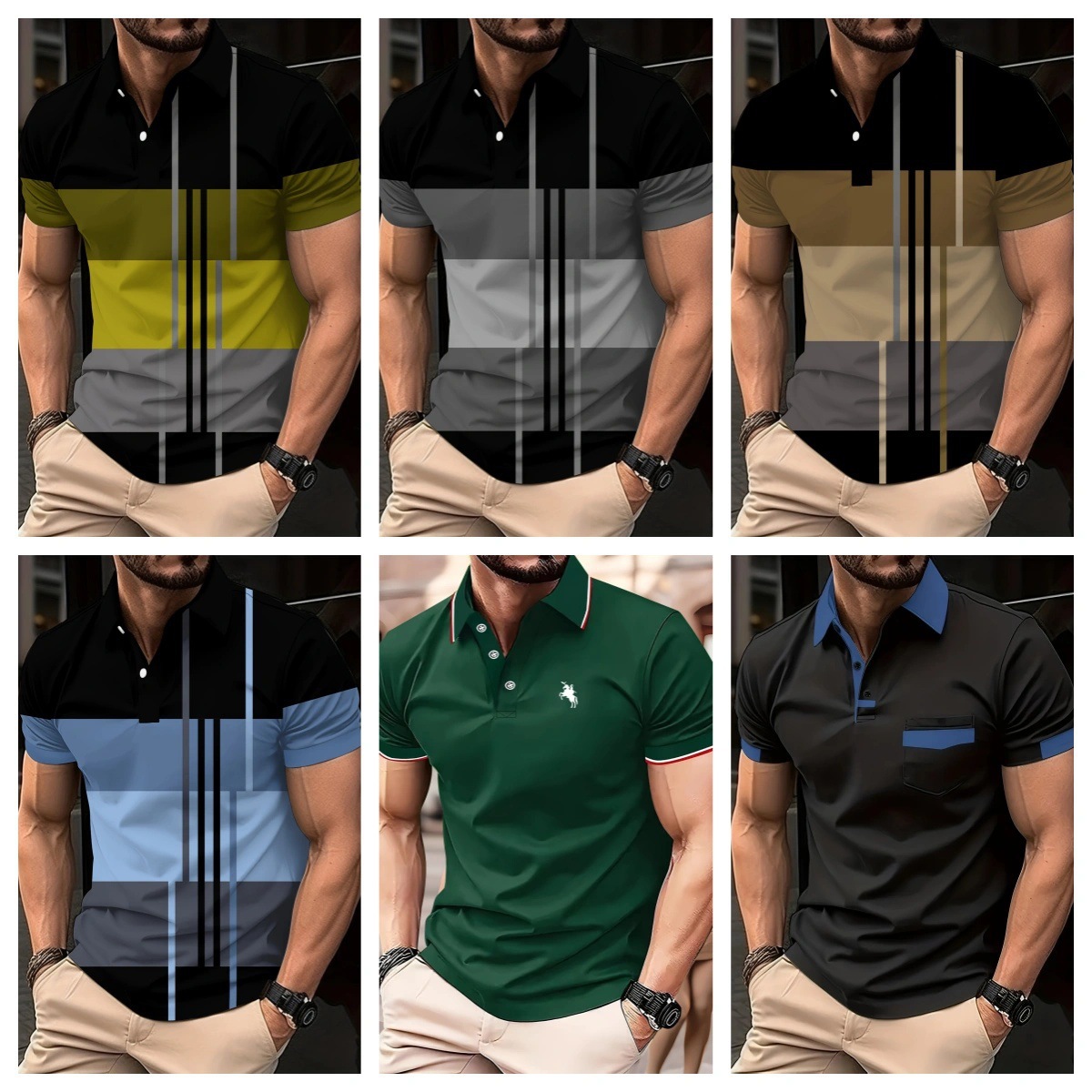 2025 유럽 및 미국 국경 간 독립 스테이션 여름 남성 컬러 블록 3D 프린트 반소매 버튼 라펠 캐주얼 폴로 셔츠 없음