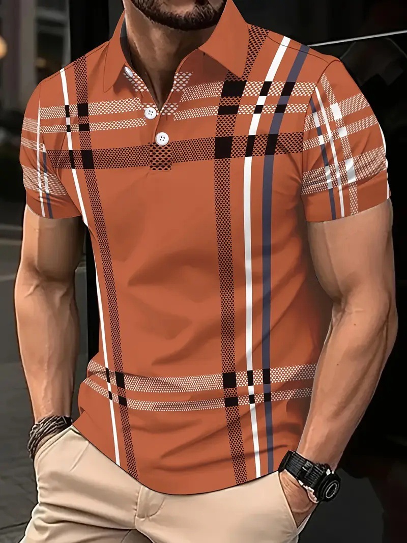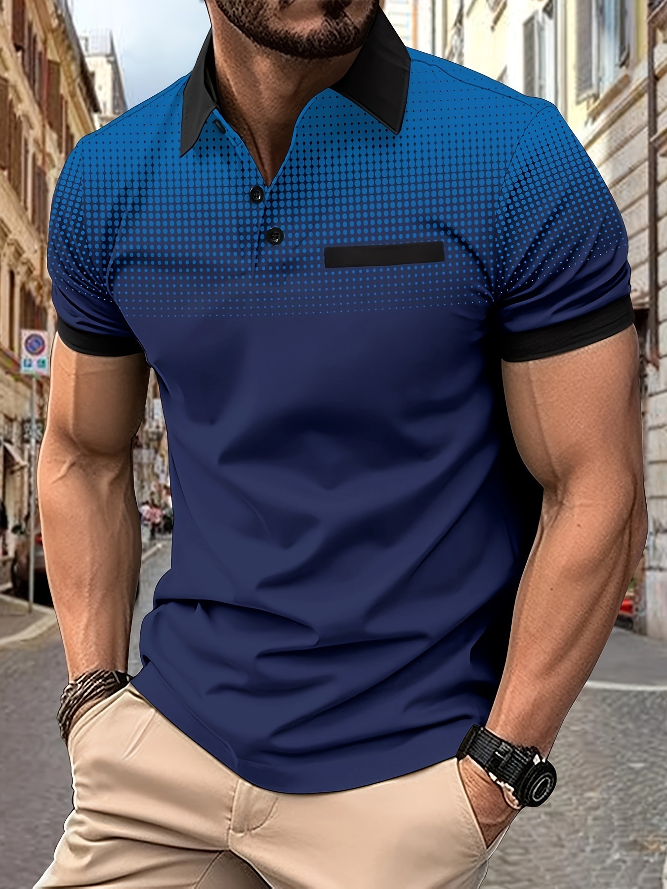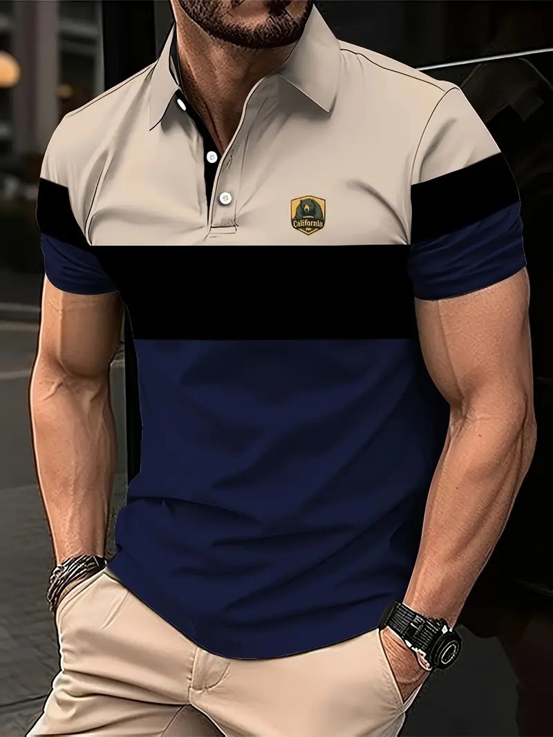 2025 유럽 및 미국 국경 간 독립 스테이션 여름 남성 컬러 블록 3D 프린트 반소매 버튼 라펠 캐주얼 폴로 셔츠 없음스토어 가기