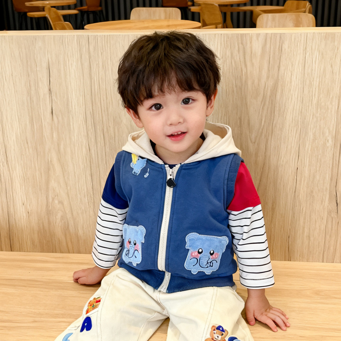 어린이 조끼 25년 겨울 모델 남녀 공용 조끼 아기 야외용 면 조끼 교복 필수품스토어 가기