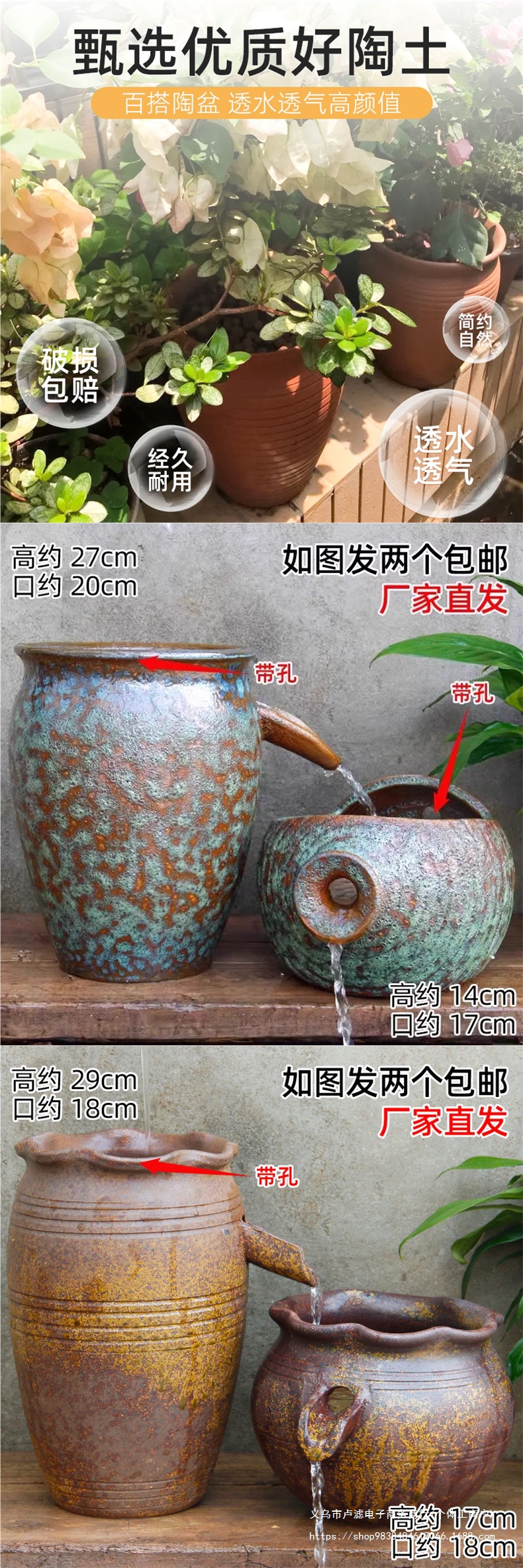 고대 방식의 생태 탱크는 물고기를 키울 수 있으며 순환하는 물, 조경, 안뜰 수조, 연못 레이아웃, 폭포 장식품, 비다공성 도자기 항아리스토어 가기