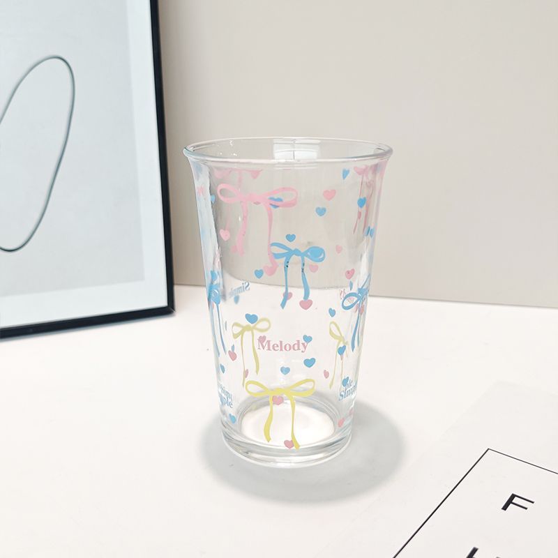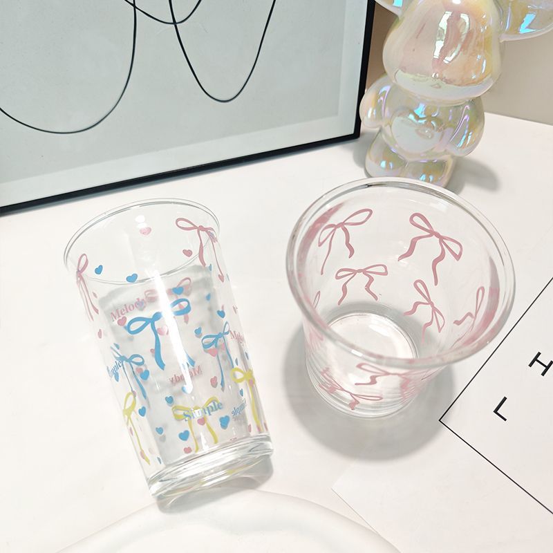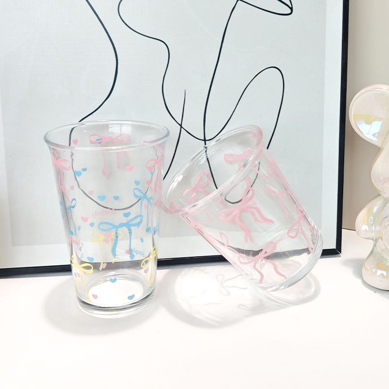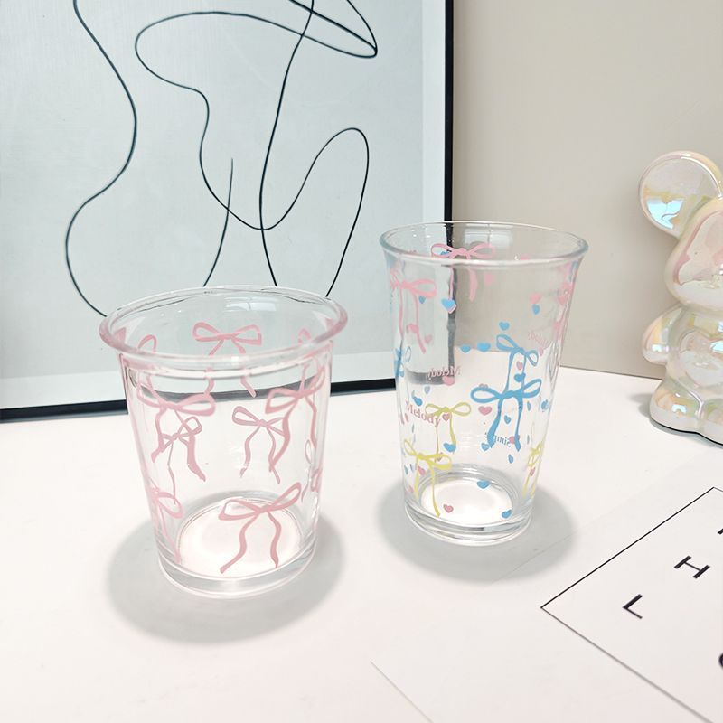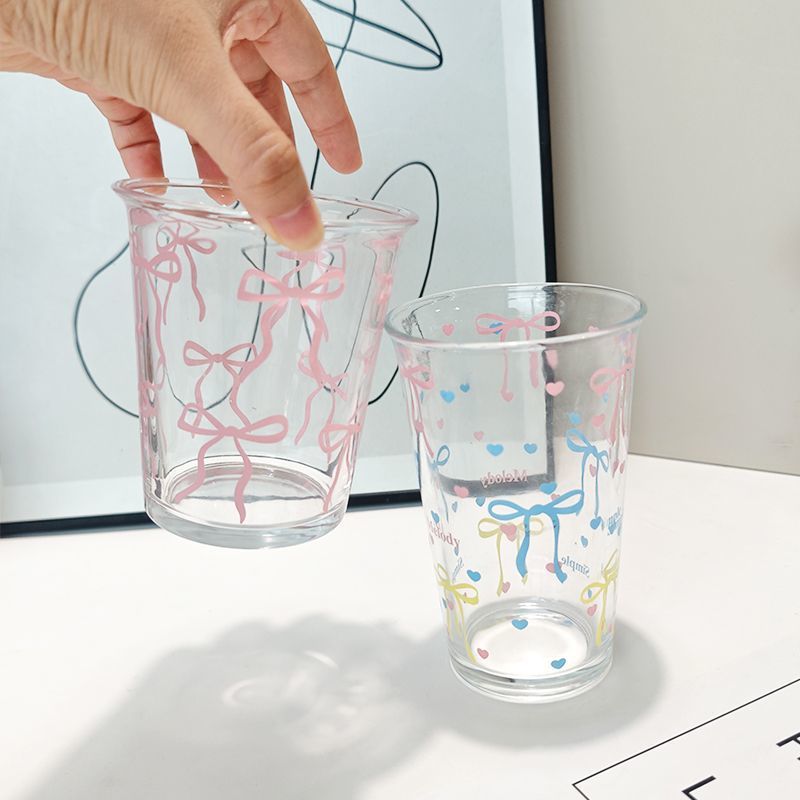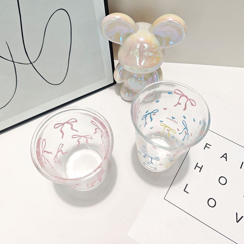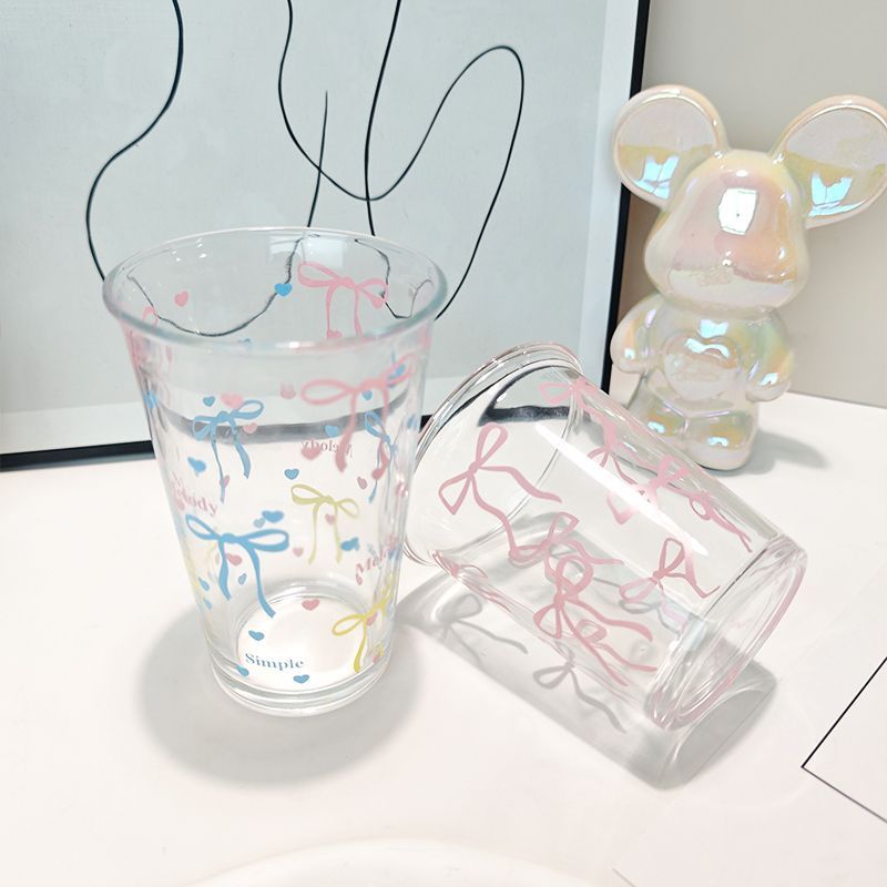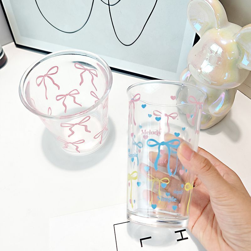 귀여운 인스 스타일 리본 소녀 유리컵 가정용 고급스러운 물컵 아침 우유컵 커피컵 선물컵