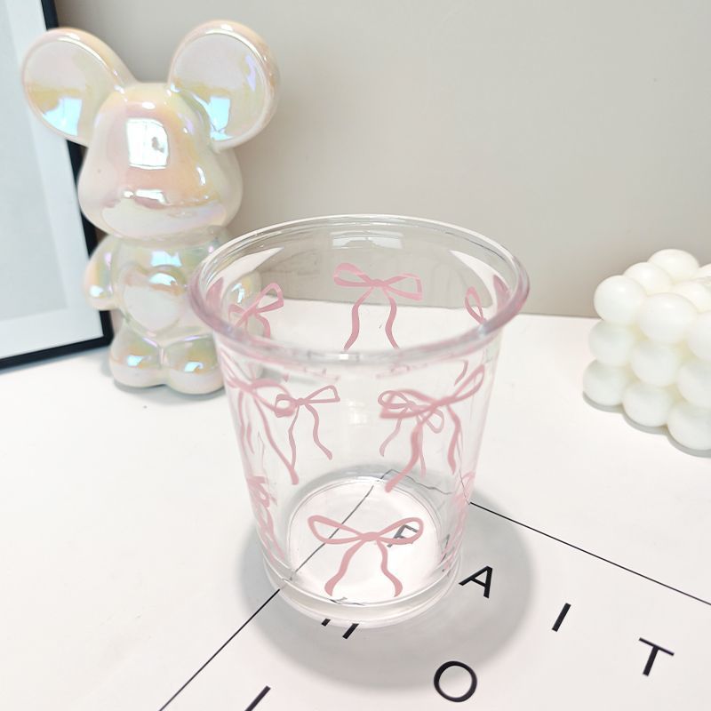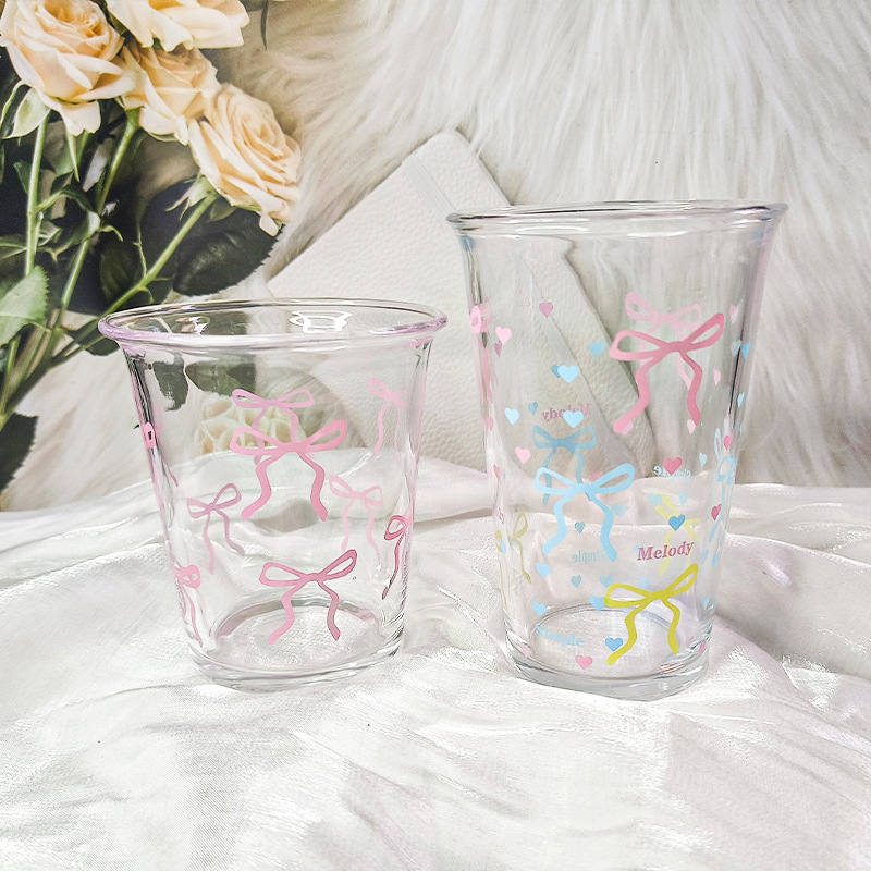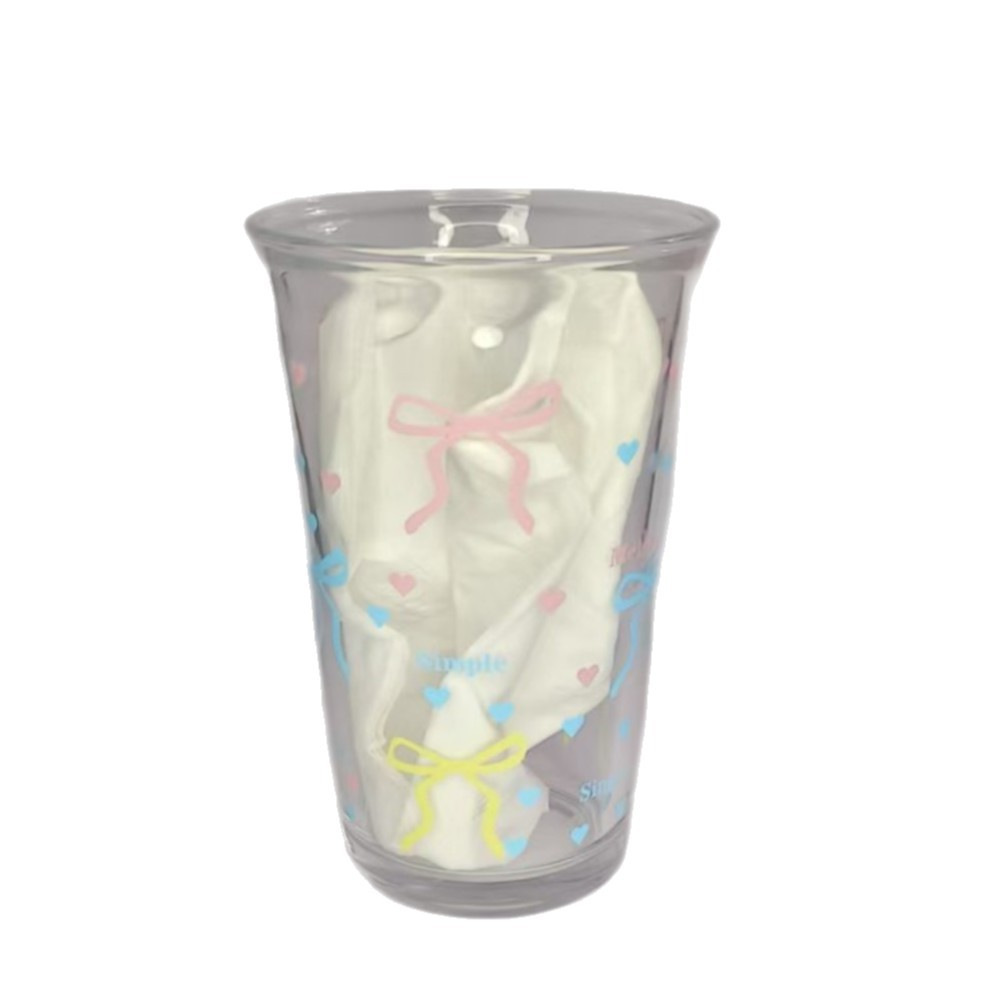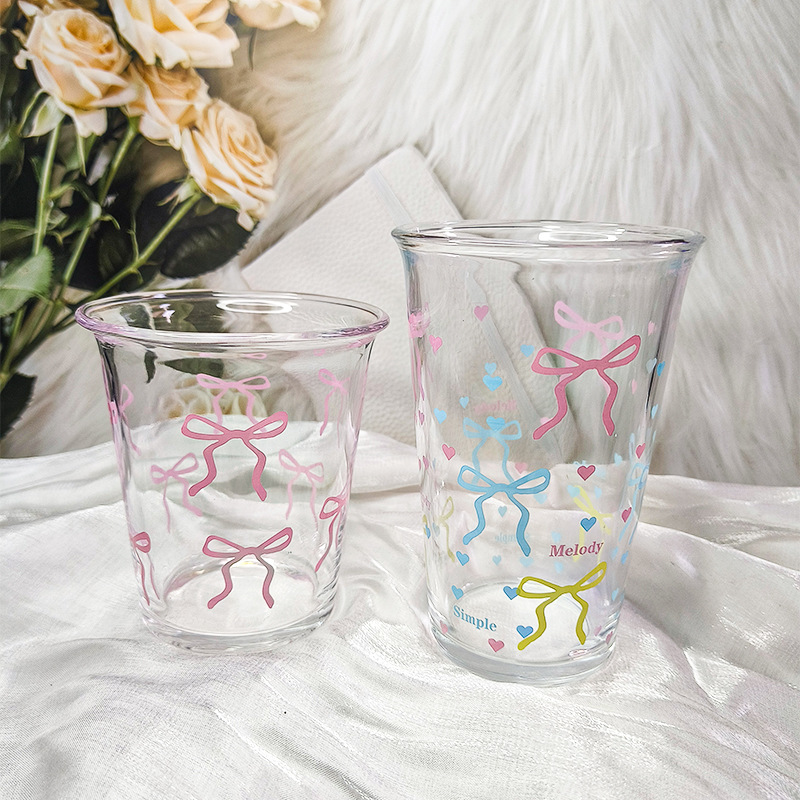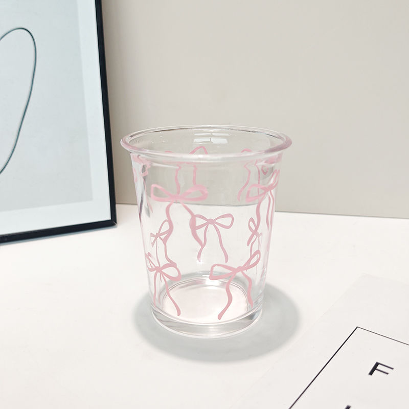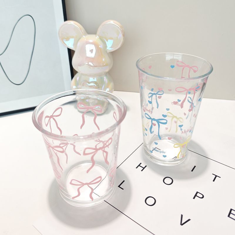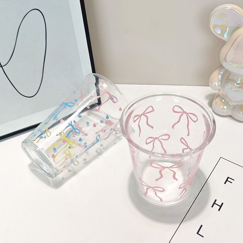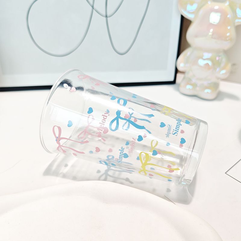 귀여운 인스 스타일 리본 소녀 유리컵 가정용 고급스러운 물컵 아침 우유컵 커피컵 선물컵