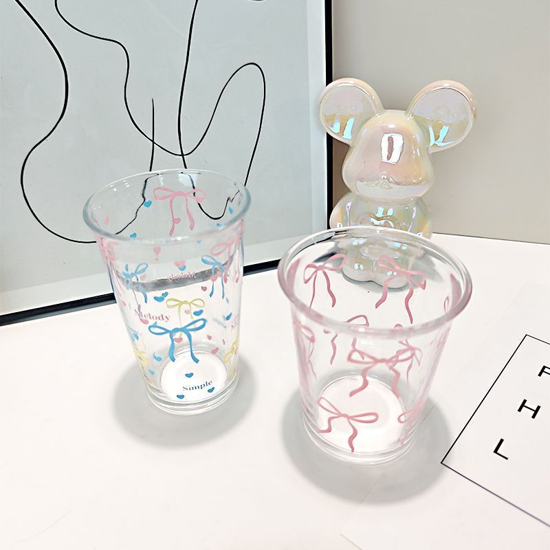 귀여운 인스 스타일 리본 소녀 유리컵 가정용 고급스러운 물컵 아침 우유컵 커피컵 선물컵스토어 가기