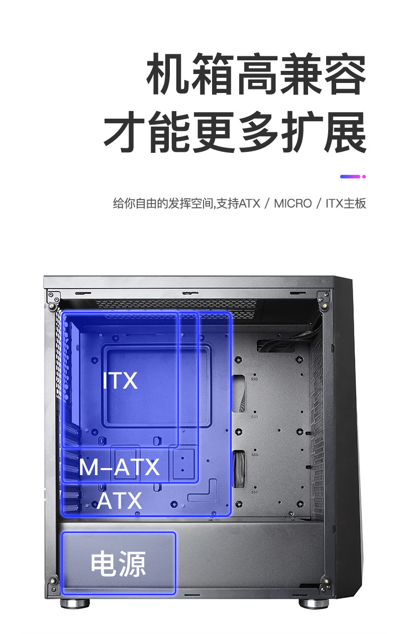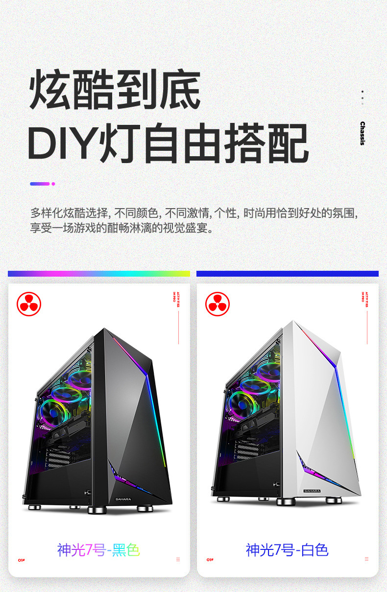 Sahara Shenguang No. 7 컴퓨터 케이스 데스크탑 전체 측면 투명 대형 보드 ATX 메인 케이스 수냉식 게임 케이스스토어 가기