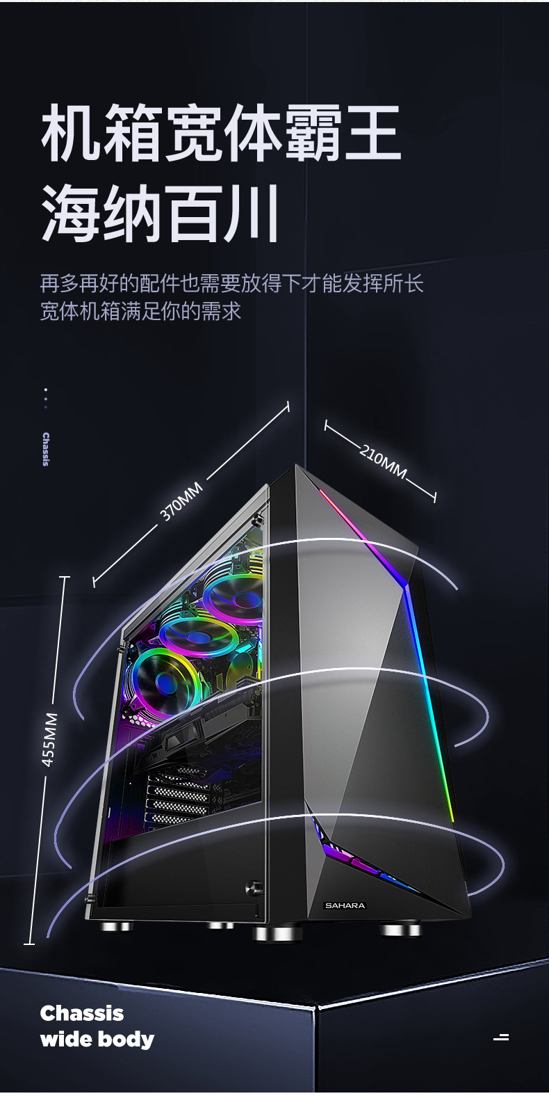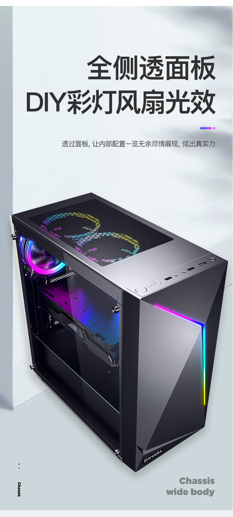 Sahara Shenguang No. 7 컴퓨터 케이스 데스크탑 전체 측면 투명 대형 보드 ATX 메인 케이스 수냉식 게임 케이스