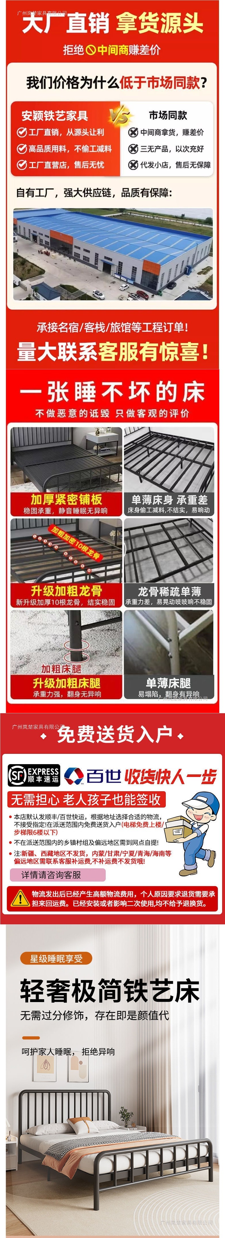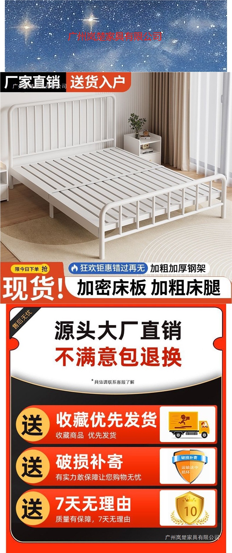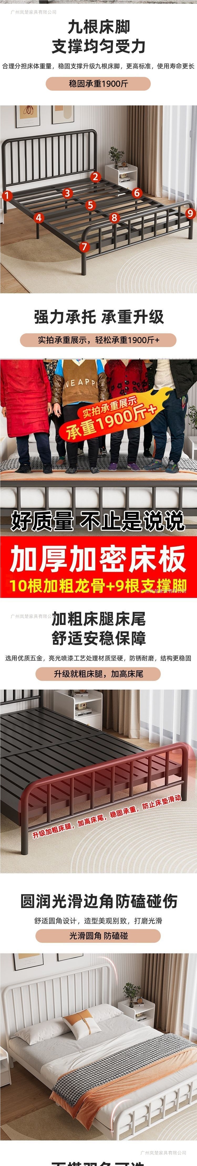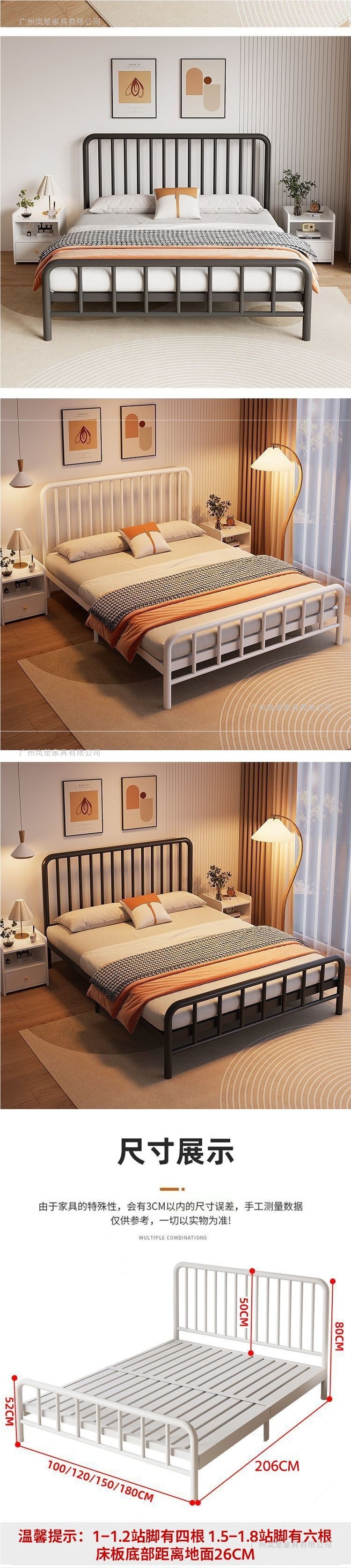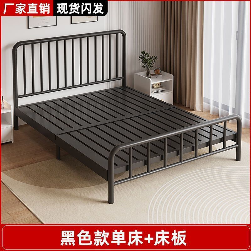 내구성이 뛰어난 심플한 철제 침대 더블 침대 1.8m 철제 침대 싱글 1.6m m 철제 프레임 침대 홈 렌탈 룸 인터넷 연예인