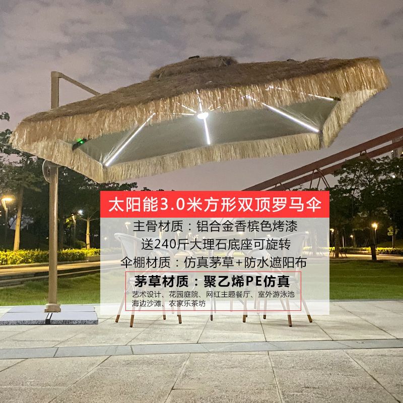 • 3m 정사각형 태양광 조명 대리석 초가 로마 우산