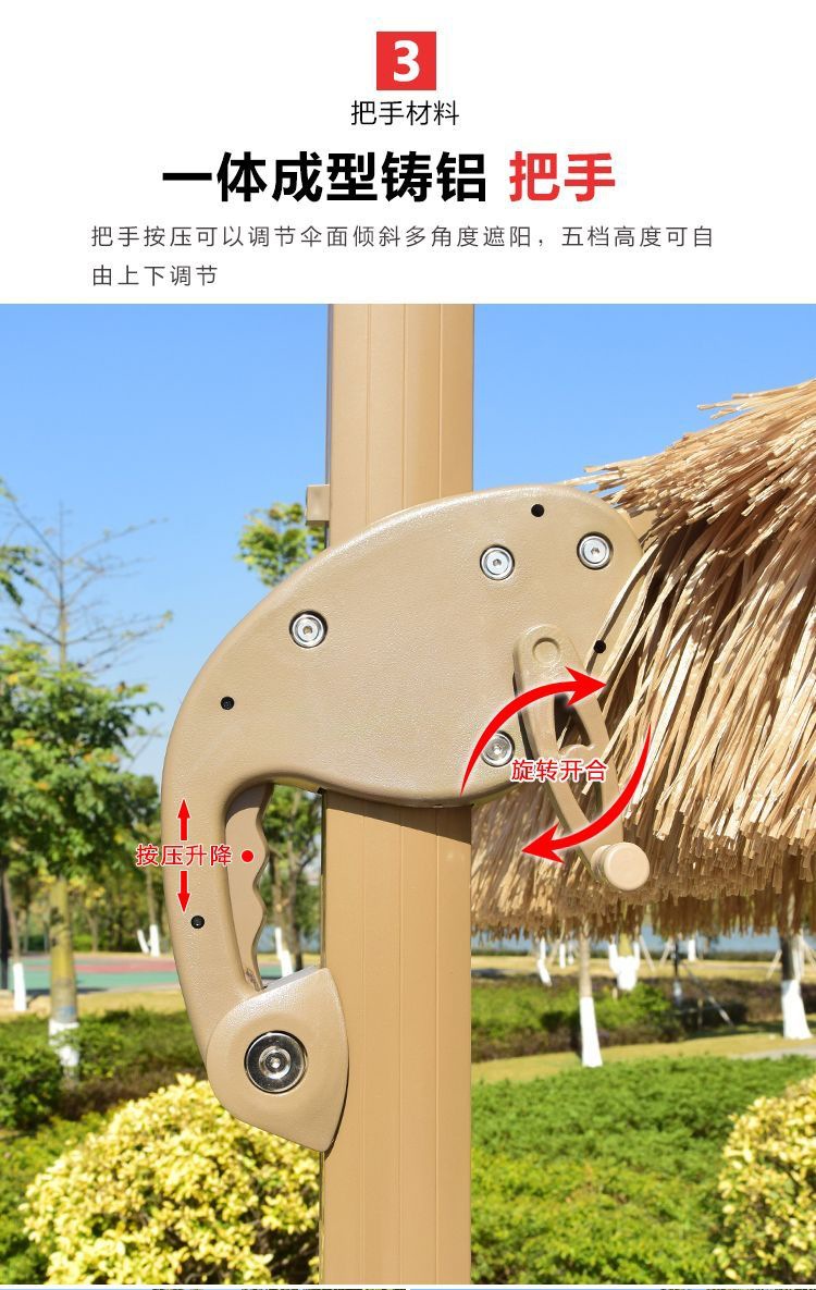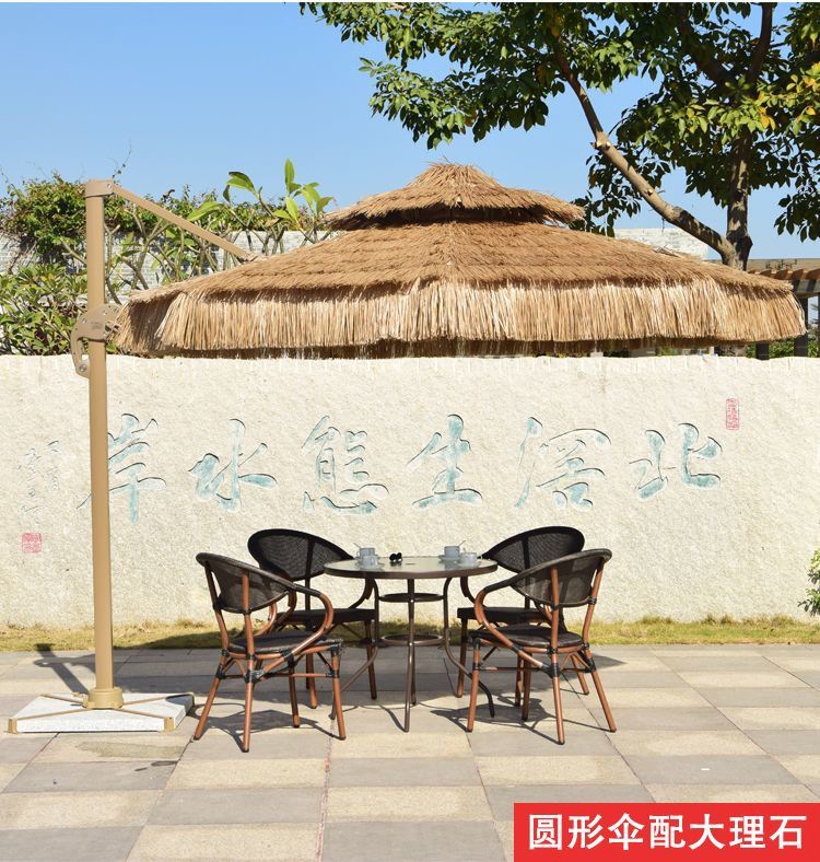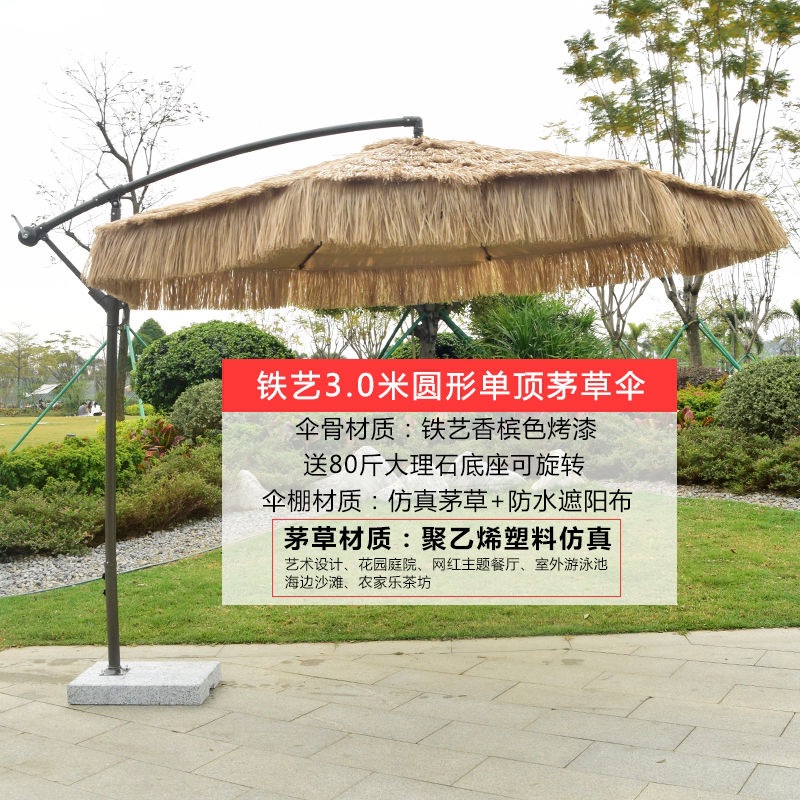 • 업그레이드된 48열 3m 원형 단일 상단 초가 중앙 기둥 우산(대리석 포함)