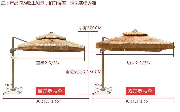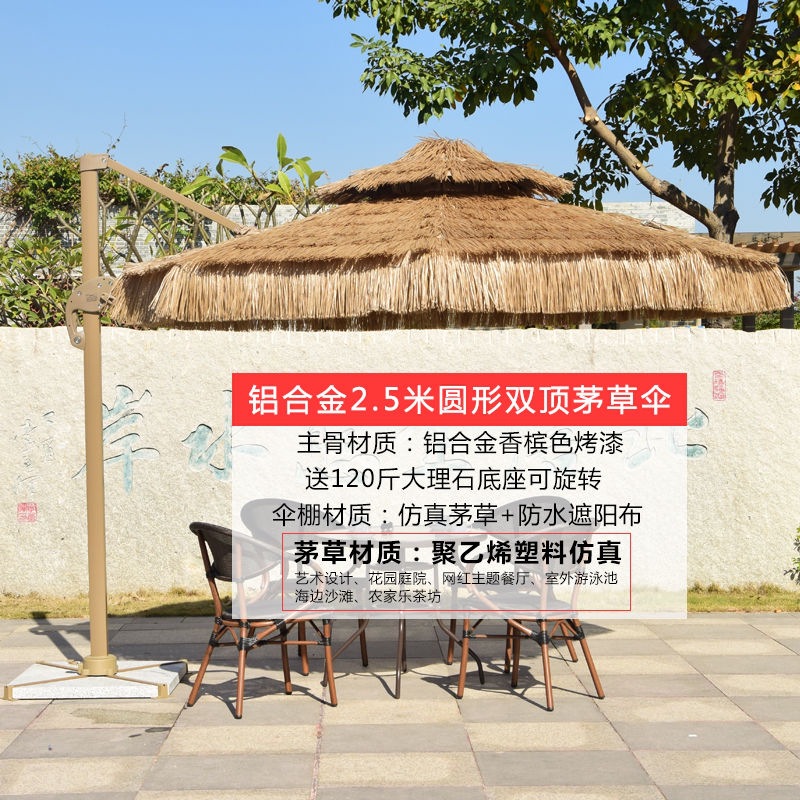 • 업그레이드된 48열 2.5m 원형 이중 상판 초가 중앙 기둥 우산(대리석 포함)