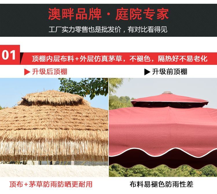 • 업그레이드된 48열 2.7m 원형 이중 상판 초가 중앙 기둥 우산(대리석 포함)