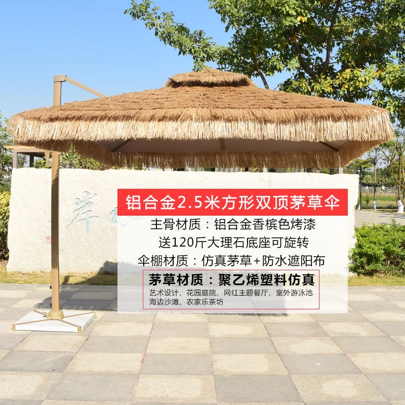 • 대리석을 사용한 2.5m 정사각형 이중 상단 초가 지붕 로마 우산