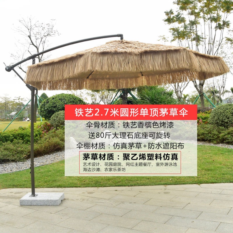 • 업그레이드된 48열 2.7m 원형 단일 상단 초가 중앙 기둥 우산(대리석 포함)