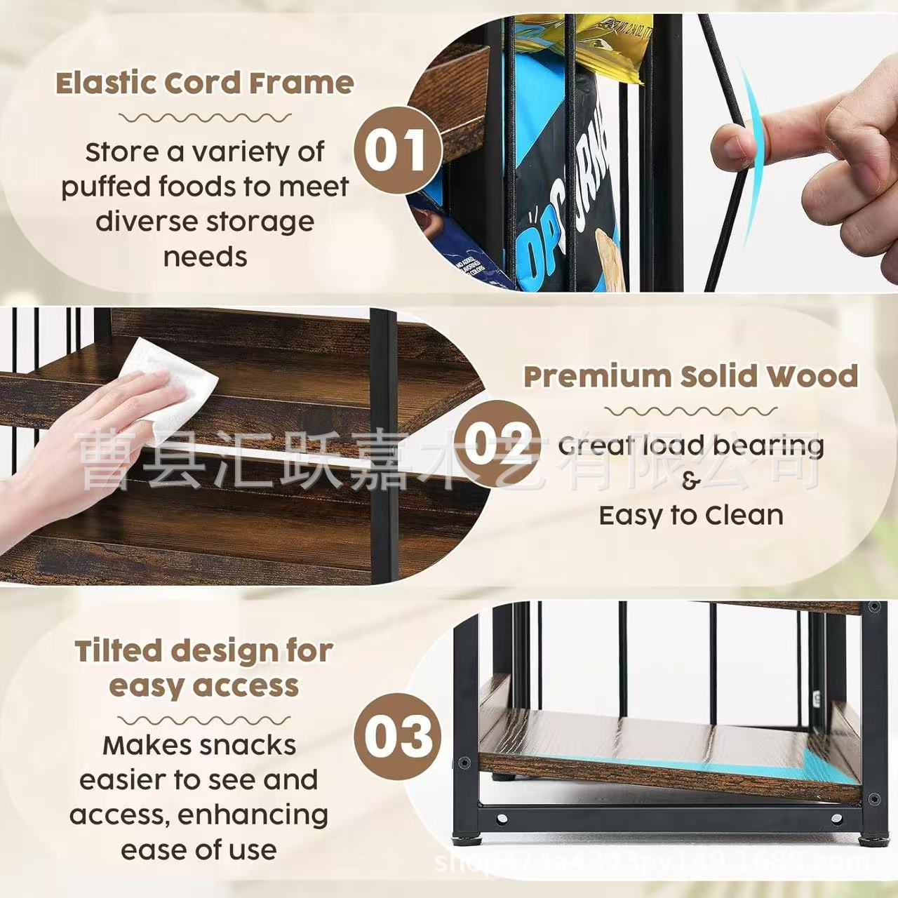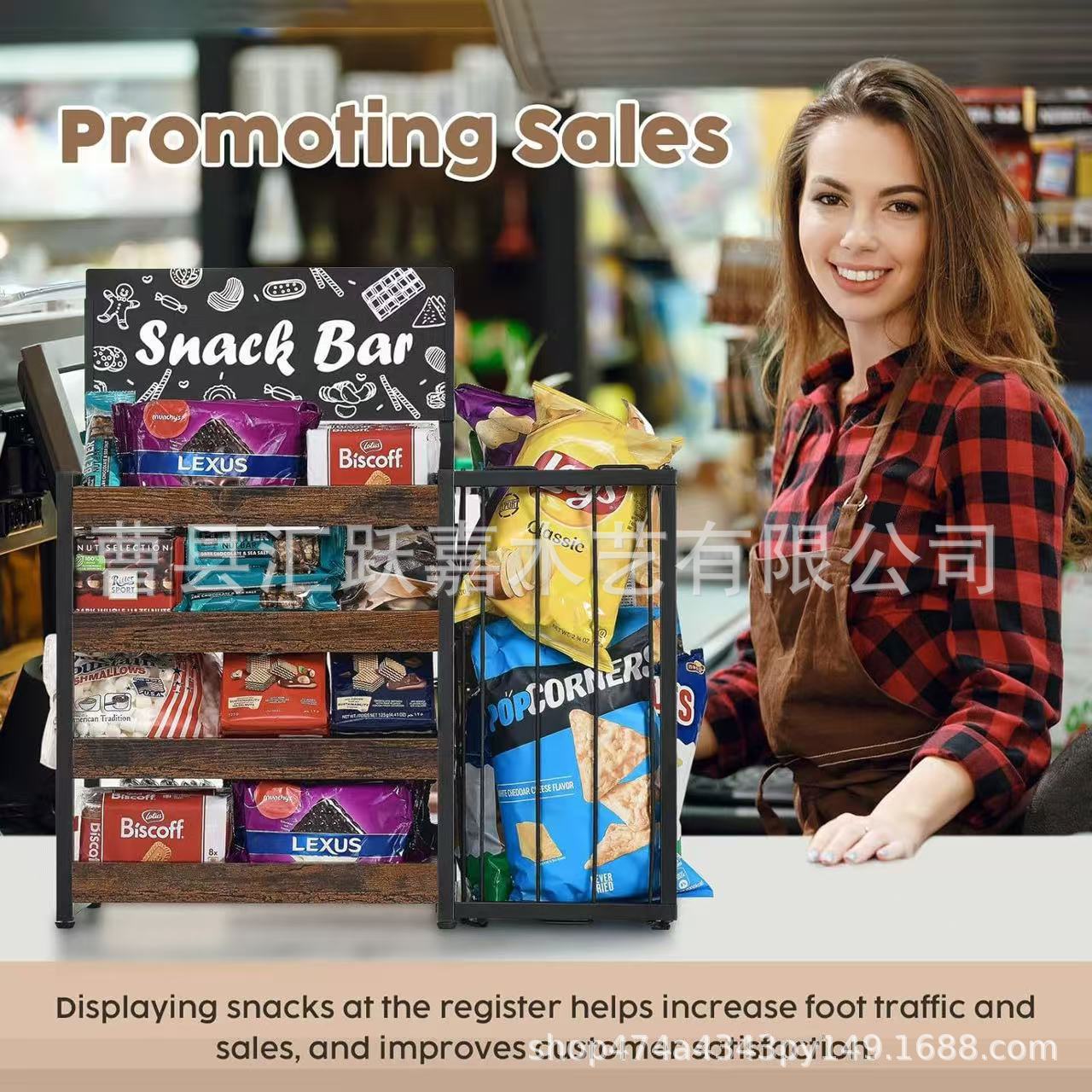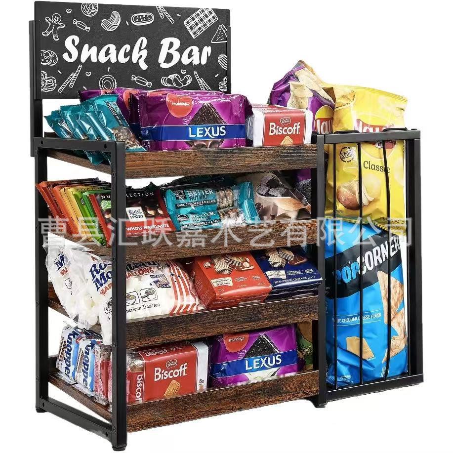 맞춤형 목재 데스크탑 스낵 보관 랙 다층 철제 및 목재 결합 매장 스낵 판매 랙 이동식 보관 랙